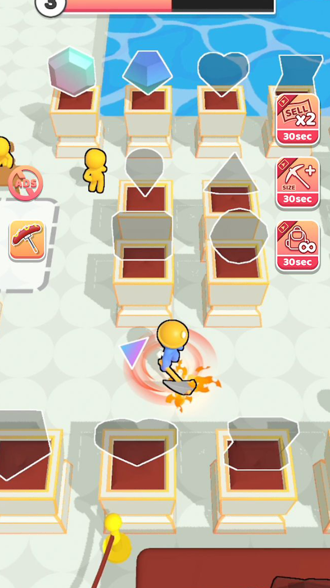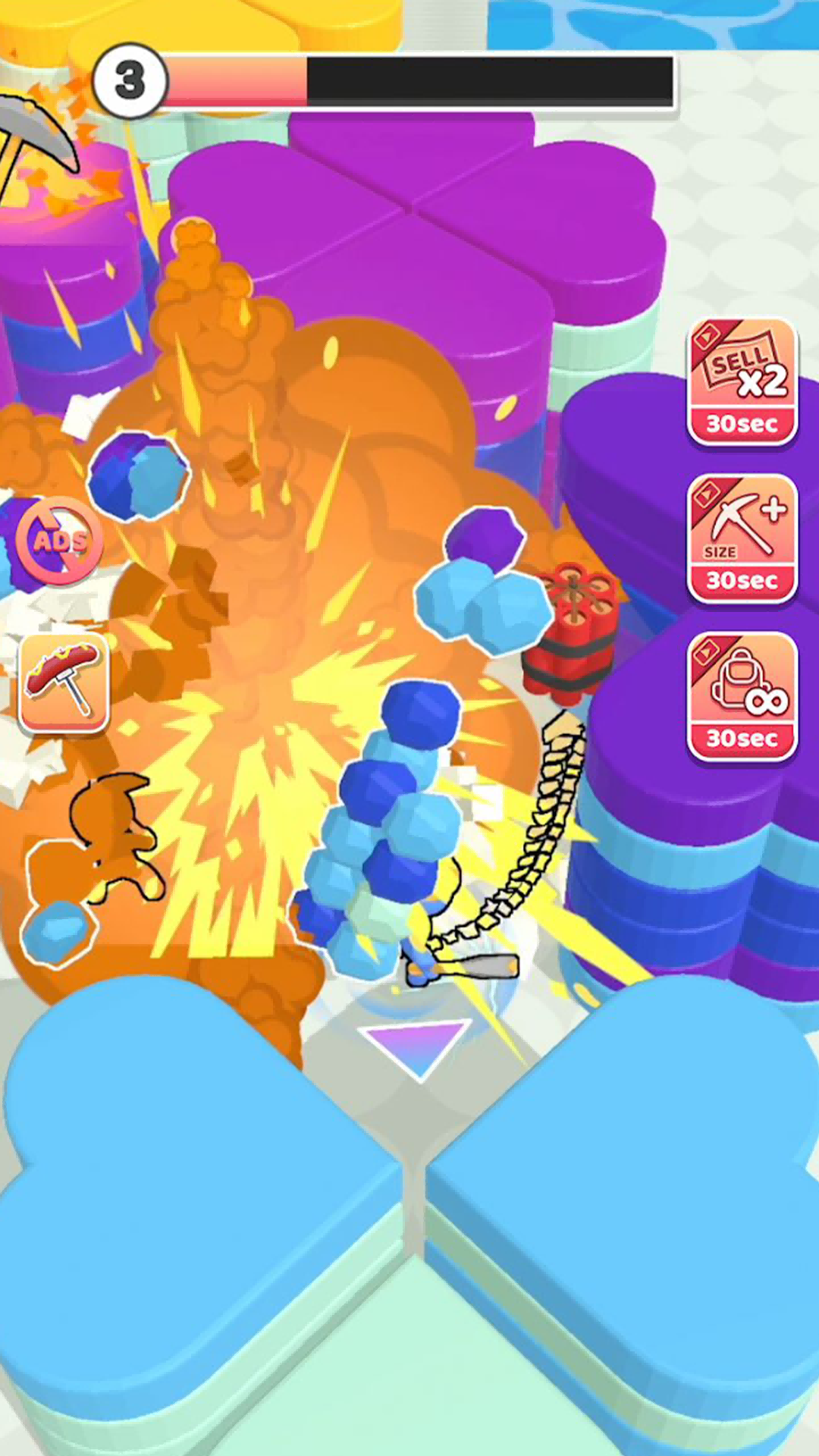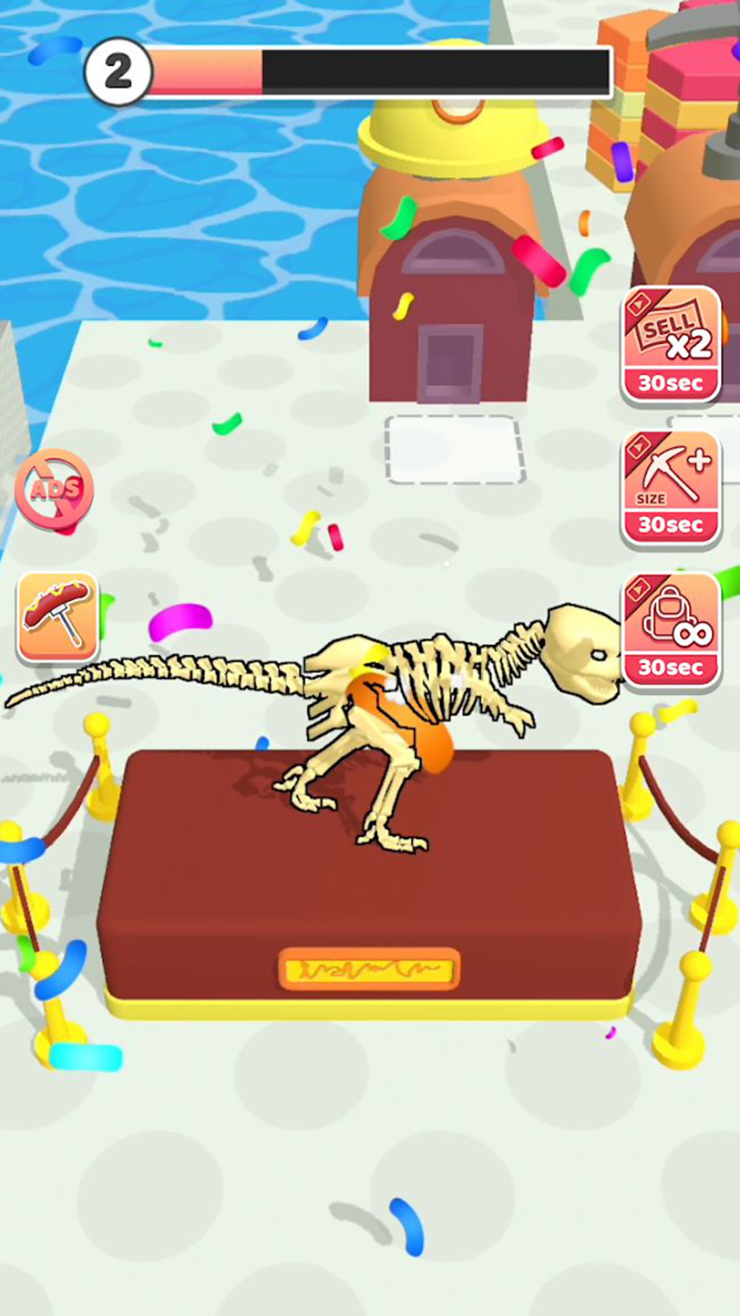 这是一款非常好玩的冒险游戏。让你可以一边开采矿石赚取收益,一边收集恐龙化石兑换宝石,一边将采集到的巨大钻石放到展览区域,赚取展示费用。