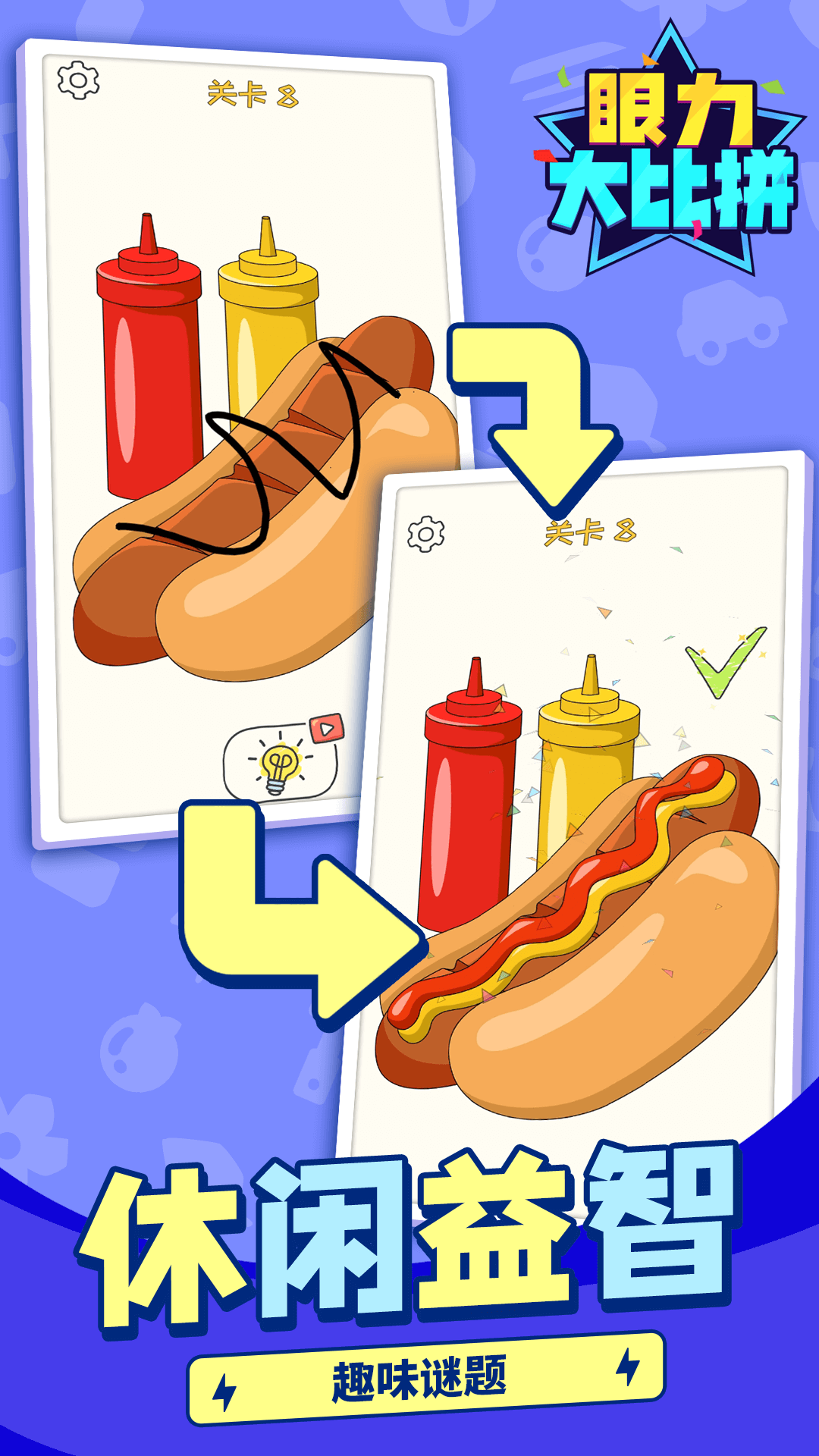 《眼力大比拼》是一款休闲益智类游戏。用手指做皮擦,选出图片中你想要删除的部分以解开谜题,揭开背后的图像。一开始,有些谜题可能看起来很直白不过另一些则需要你真正开动脑筋,找出要解决问题就必须擦除的正确物品或物品的一部分。在不同难度的关卡中过关斩将,问题会变得越来越复杂。快来体验一下吧!