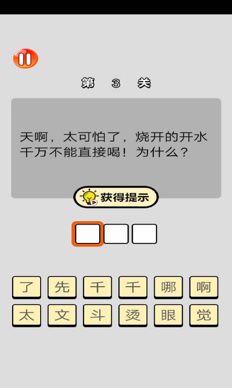 本款单机游戏脑筋急转弯男女老少皆宜。 共有1000道脑筋急转弯题,快来和你的小伙伴们玩吧。。 脑筋急转弯的8大好处 1.开发智力(让你越来越聪明) 2.激活脑细胞,让大脑得到锻炼 3.提高想象力 4.防止老年性痴呆 5.活跃气氛(一个好的脑筋急转弯能拉两个人的距离) 6.拓展知识面(很多都是带有典故的) 7.提高幽默感(可加入非特别正规的演讲中) 8.指桑骂槐(可隐含的骂你想骂的人,这条不推荐)