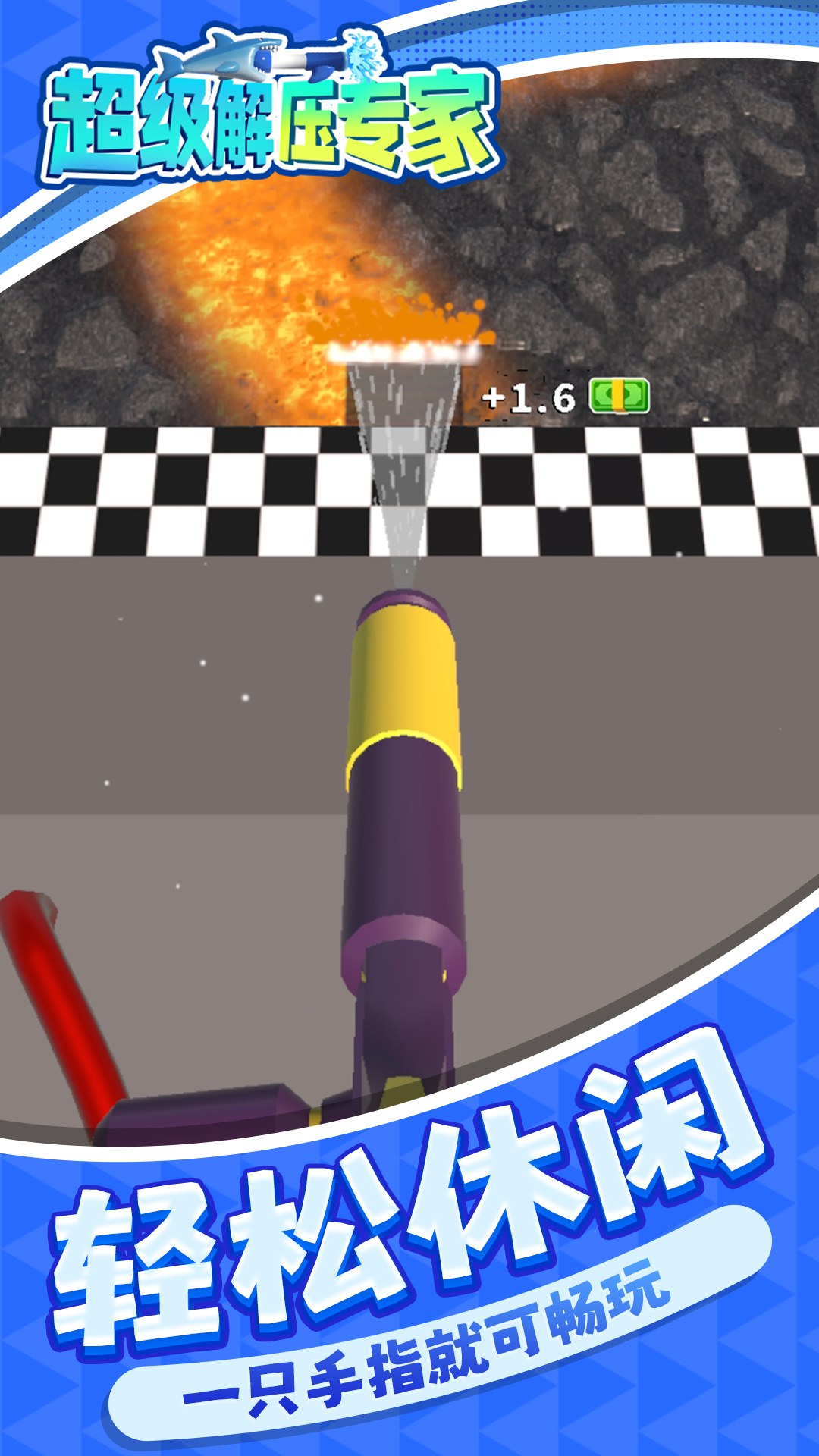 《超级解压专家》是以深度清洁地板为背景的动作跑酷游戏,你将在跑酷的过程中收集清水和清洁剂,提升装备的威力。借助威力强劲的水管,清理道路上的阻碍,熄灭关卡中的火焰,看着厚厚的油污一点一点被清理干净,熊熊的火焰一点一点的逐渐熄灭,让你解压的同时也能体验到游戏的乐趣。快来下载《超级解压专家》来体验吧!
