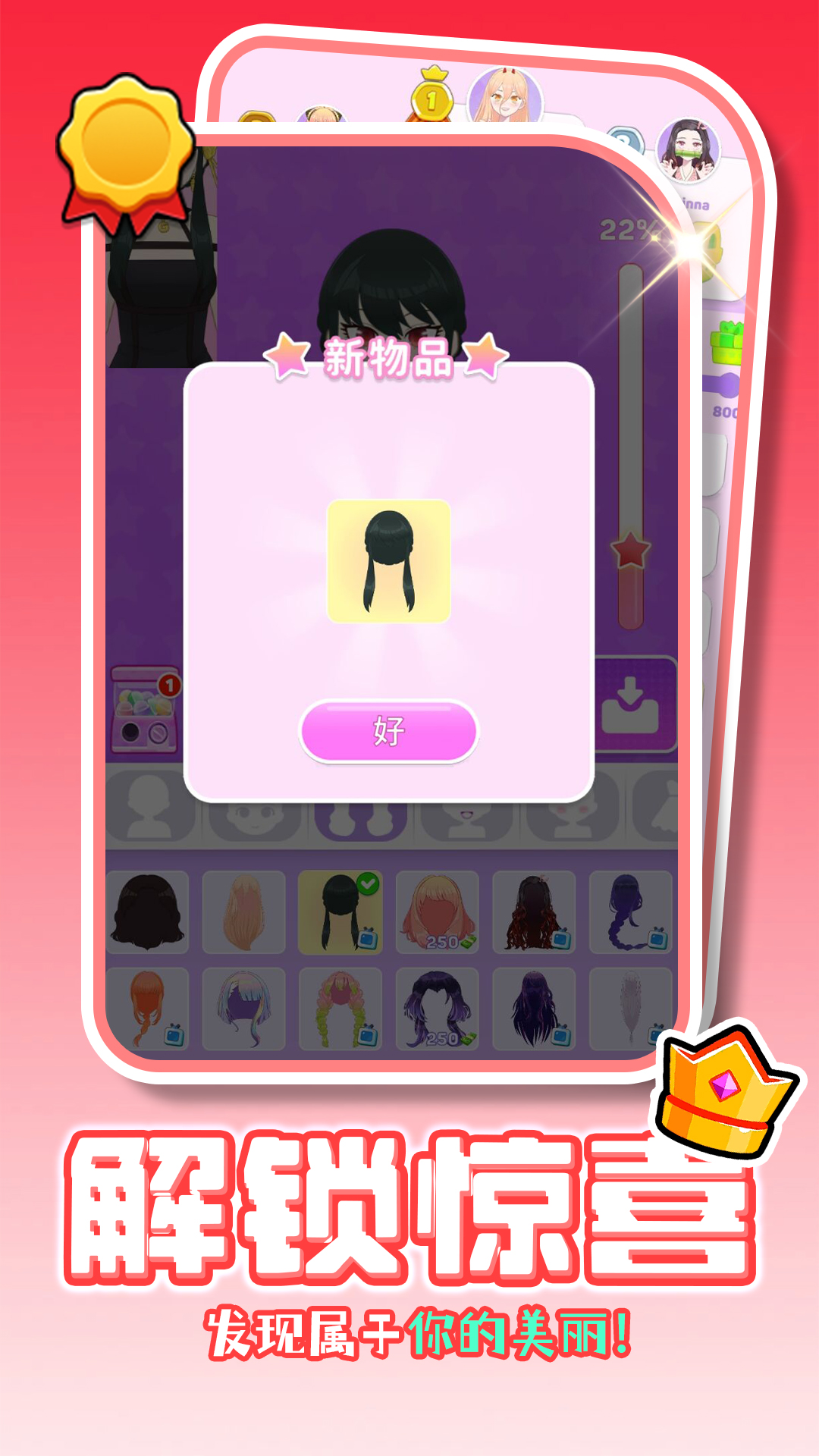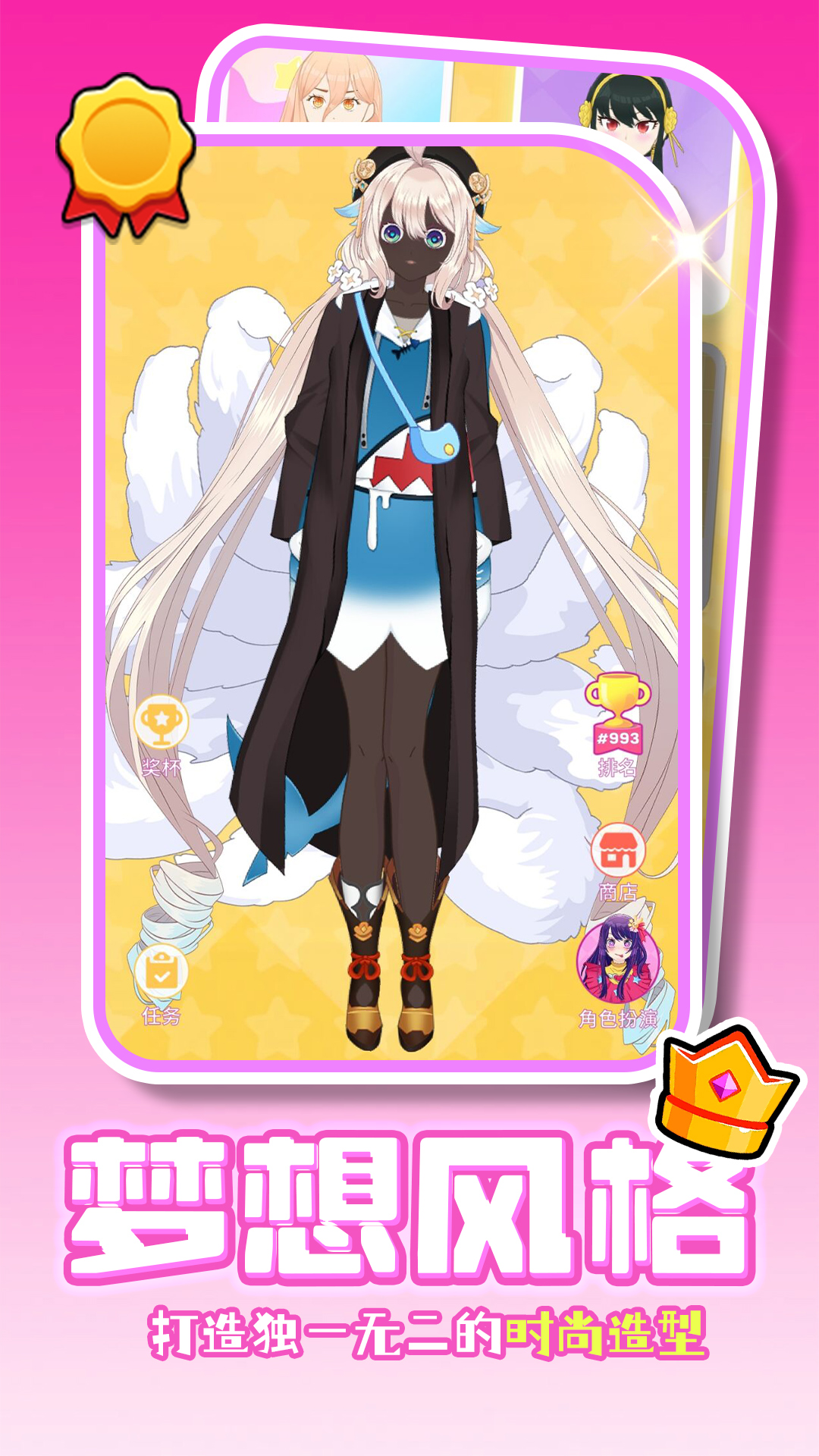 是一款玩起来十分有趣的换装搭配类游戏,游戏有着十分精美的画风,玩家在游戏中作为一名设计师,可以将自己内心中的想法与喜好,打造出理想的时装,可以角色扮演和打扮自己的动漫娃娃形象。走进动漫女孩装扮角色扮演室,收集精美的时尚物品来装满你的衣柜,并定制你喜欢的公主风格。