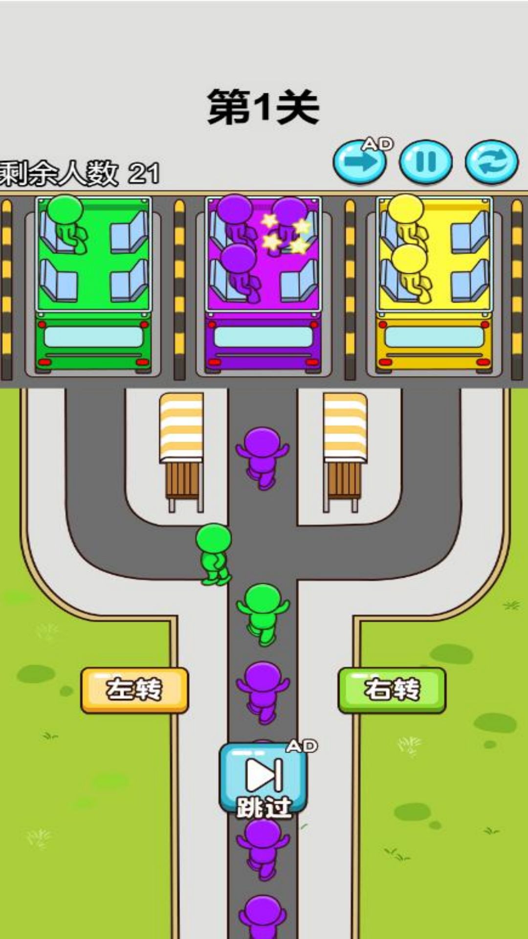 一款清新卡通风格的思维游戏,玩家要控制各种颜色的车帮助小人顺利上到属于自己颜色的车,每种车只能装载一定人数,需要合理控制。玩家需要利用思维按照顺序将停车场的车开出来并接上相应的乘客,注意被阻挡的车是开不出来的,所以要注意提前布局。