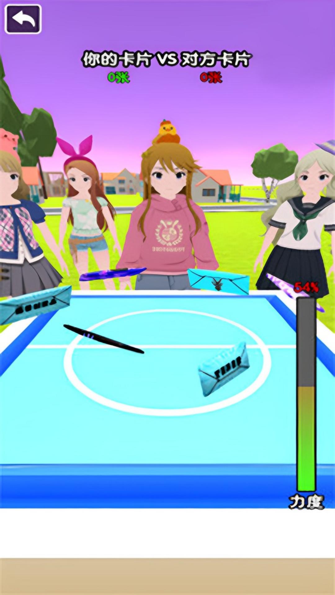 是一款休闲益智小游戏,玩家将与各个同学进行拍卡片对决,掌控力度成功将卡片拍翻面则可以获得该卡片,快开始你的卡片收集之旅吧。