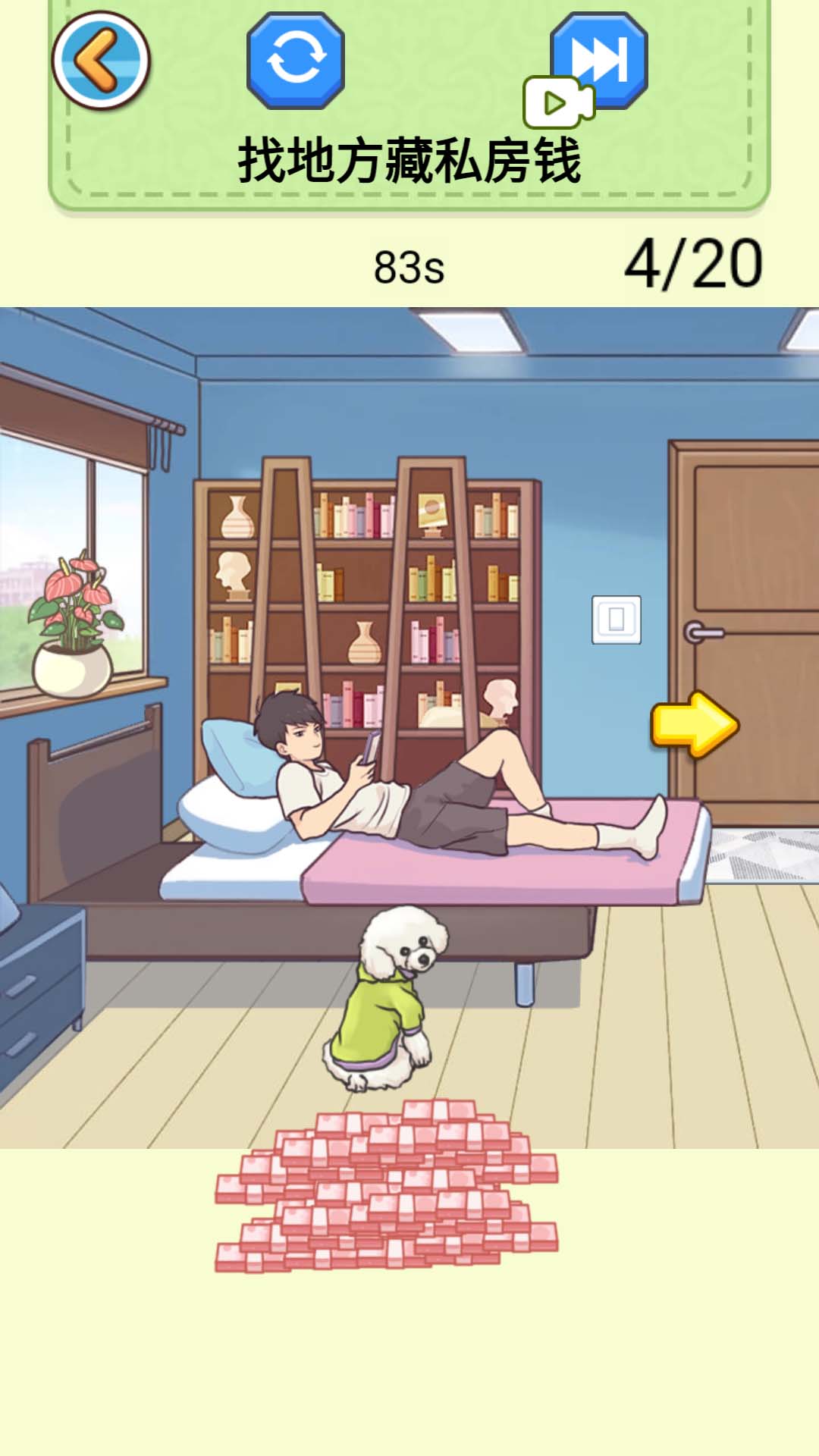 《查出私房钱》是一款休闲益智类小游戏,玩家需要在家中任何不起眼的角落将私房钱藏好,千万不能被老婆查出来,快来试试吧