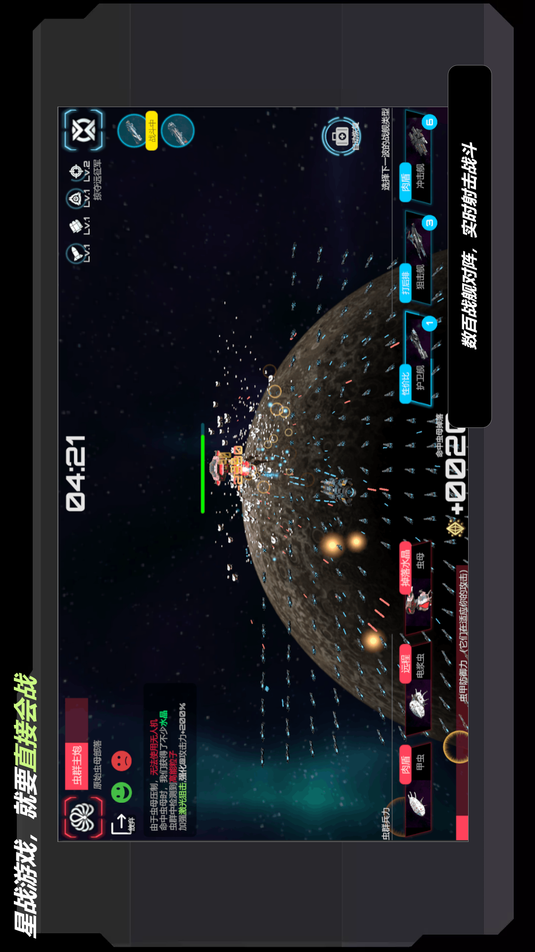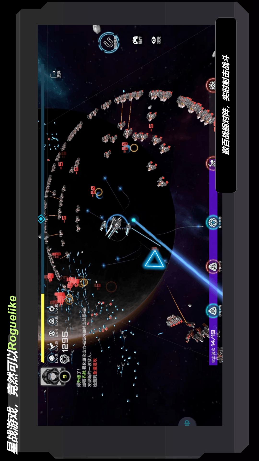 你可以选择三个不同感受的舰队,只需一根手指就能实时控制整个舰队和无数敌人进行厮杀。
