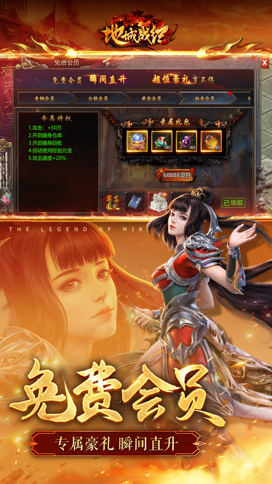 恭迎大圣归来,上线领取2888元特权卡,送你十万灵符。满级会员,自动回收,双倍攻速统统有!大圣专属筋斗云,地图之上任意传送。抛弃暗坑,真传奇,就是要尽兴!