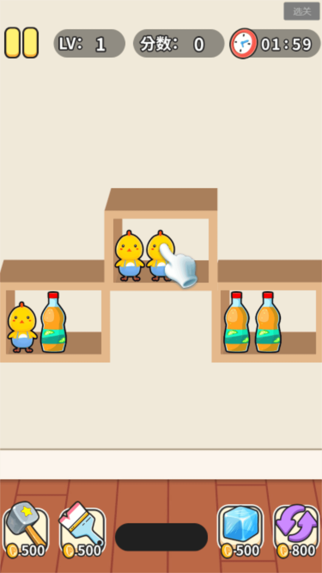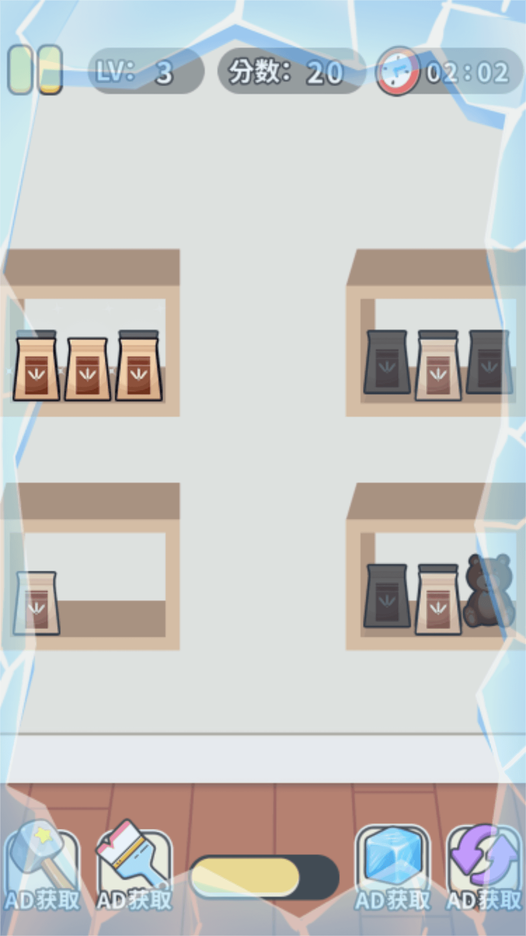 一款休闲类小游戏,游戏的核心玩法为玩家经营小超市,但是小超市的物品摆放很乱,需要整理好,把相同的物品放在同一个格子内。游戏主要玩法为点击并滑动屏幕拖动物品来摆放到正确的位置进行消除,全部物品都消除后游戏胜利。快来一起体验吧!