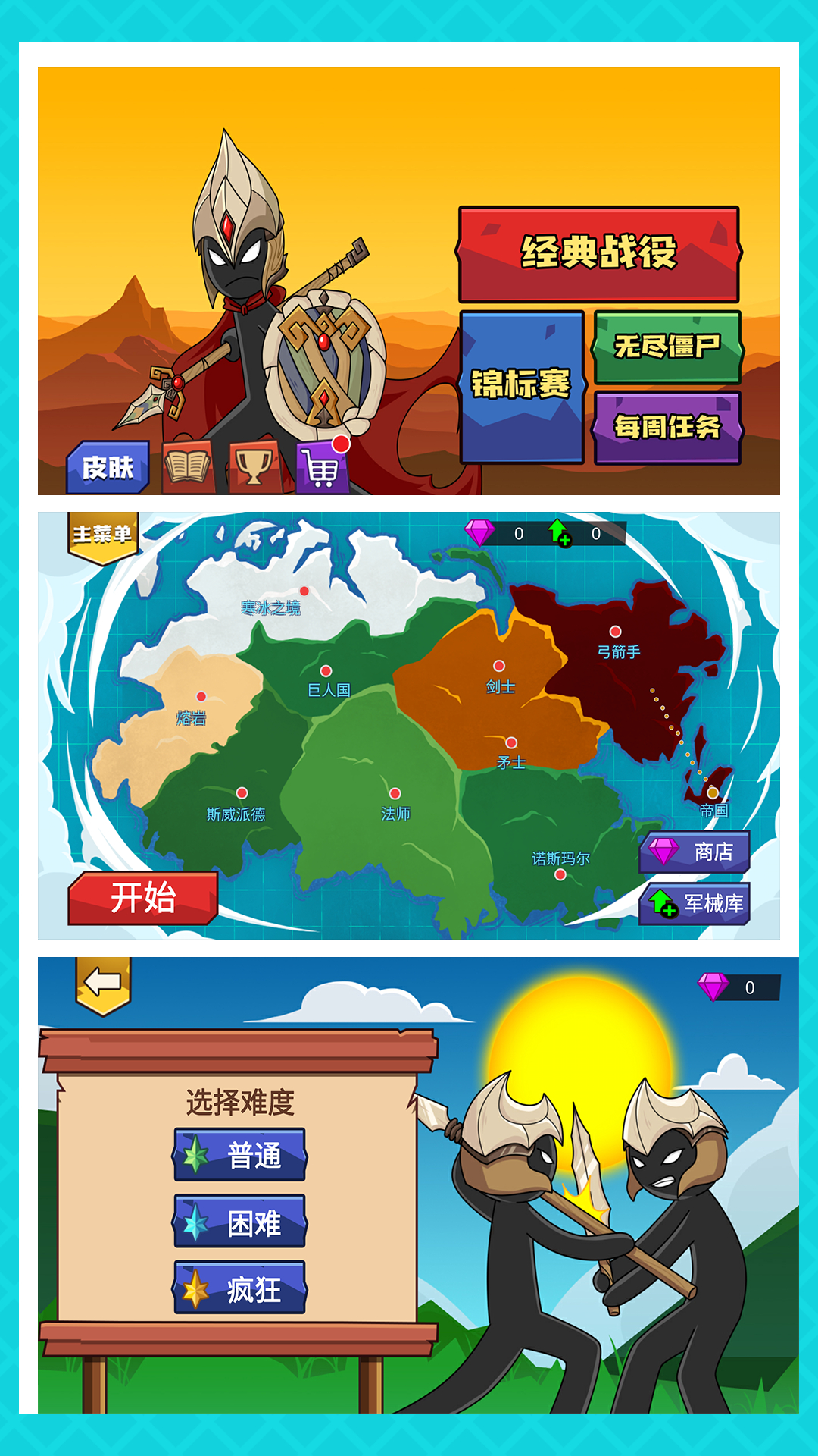 游戏中玩家需要一边需要组建自己的火柴人战队,同时还必须指导他们参加战争,只有灵活的操作才能顺利击败各种敌人哟
