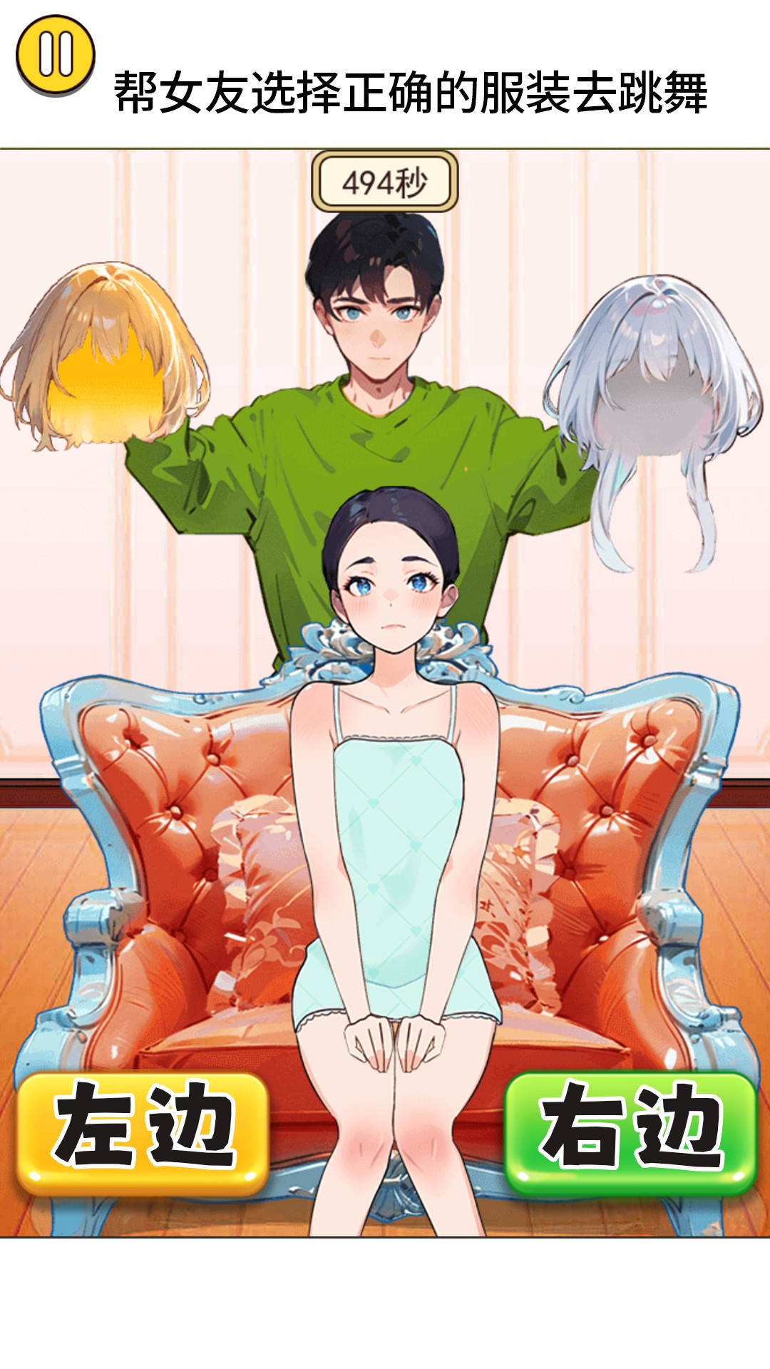 《女友爱换装》是一款休闲益智游戏,游戏中你需要根据女友的反应来选出合适的衣服搭配,只有一套装扮才是适合出门的,好好思考是哪一边吧。