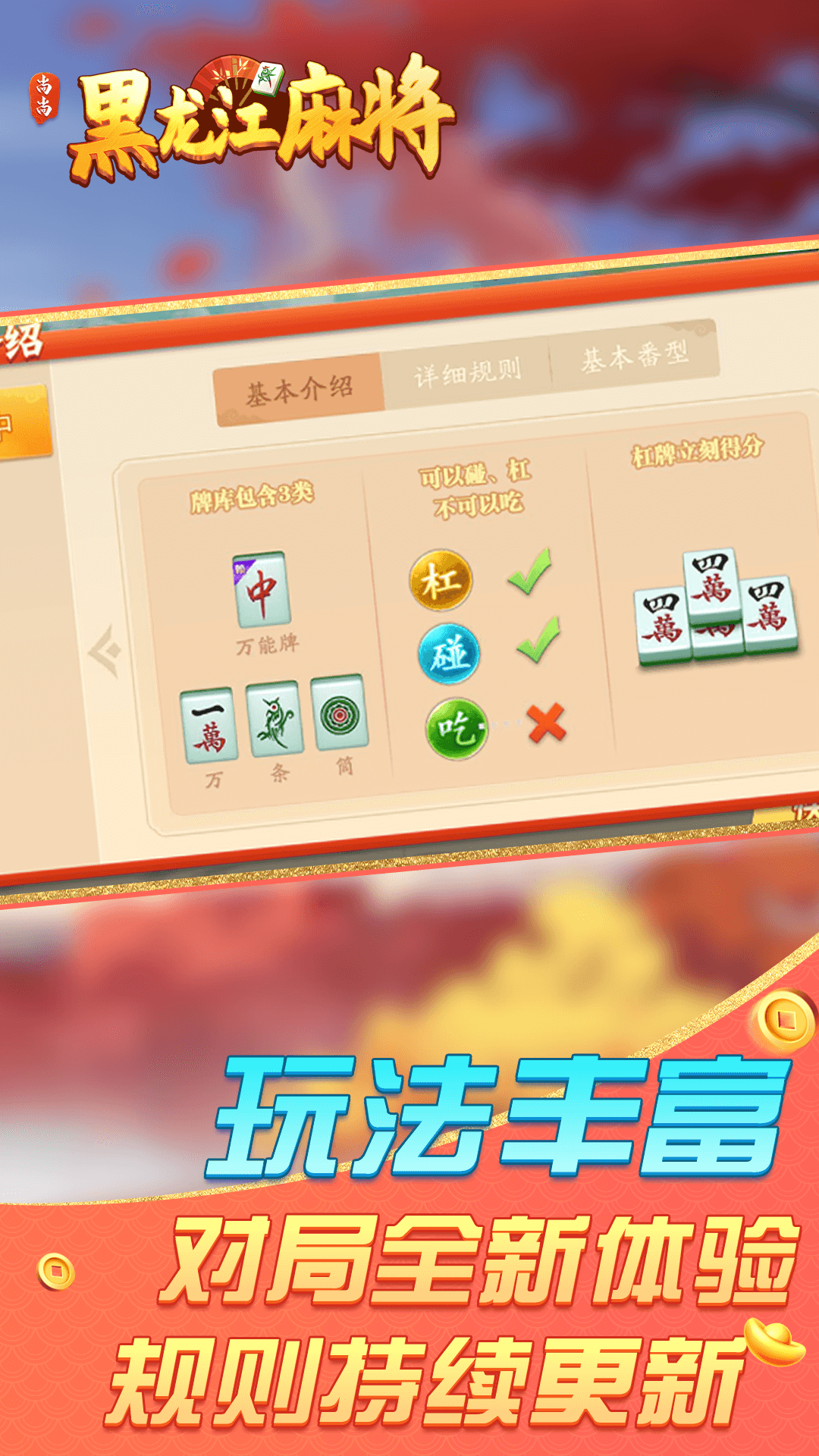 全国火热的黑龙江麻将,包含血流红中、血流成河、血战到底等多种经典玩法。可以好友对战,也可全国匹配,快来体验吧。