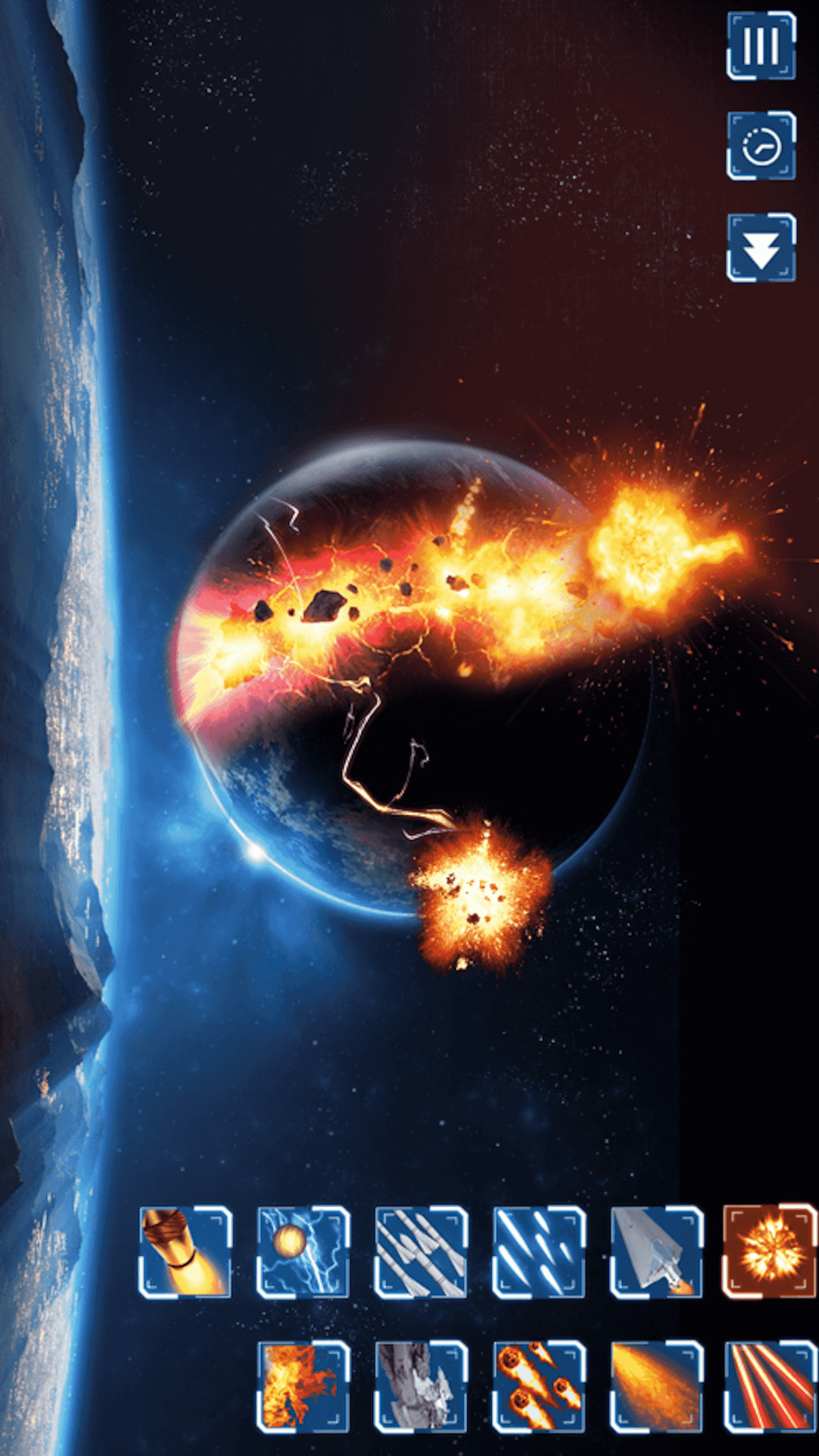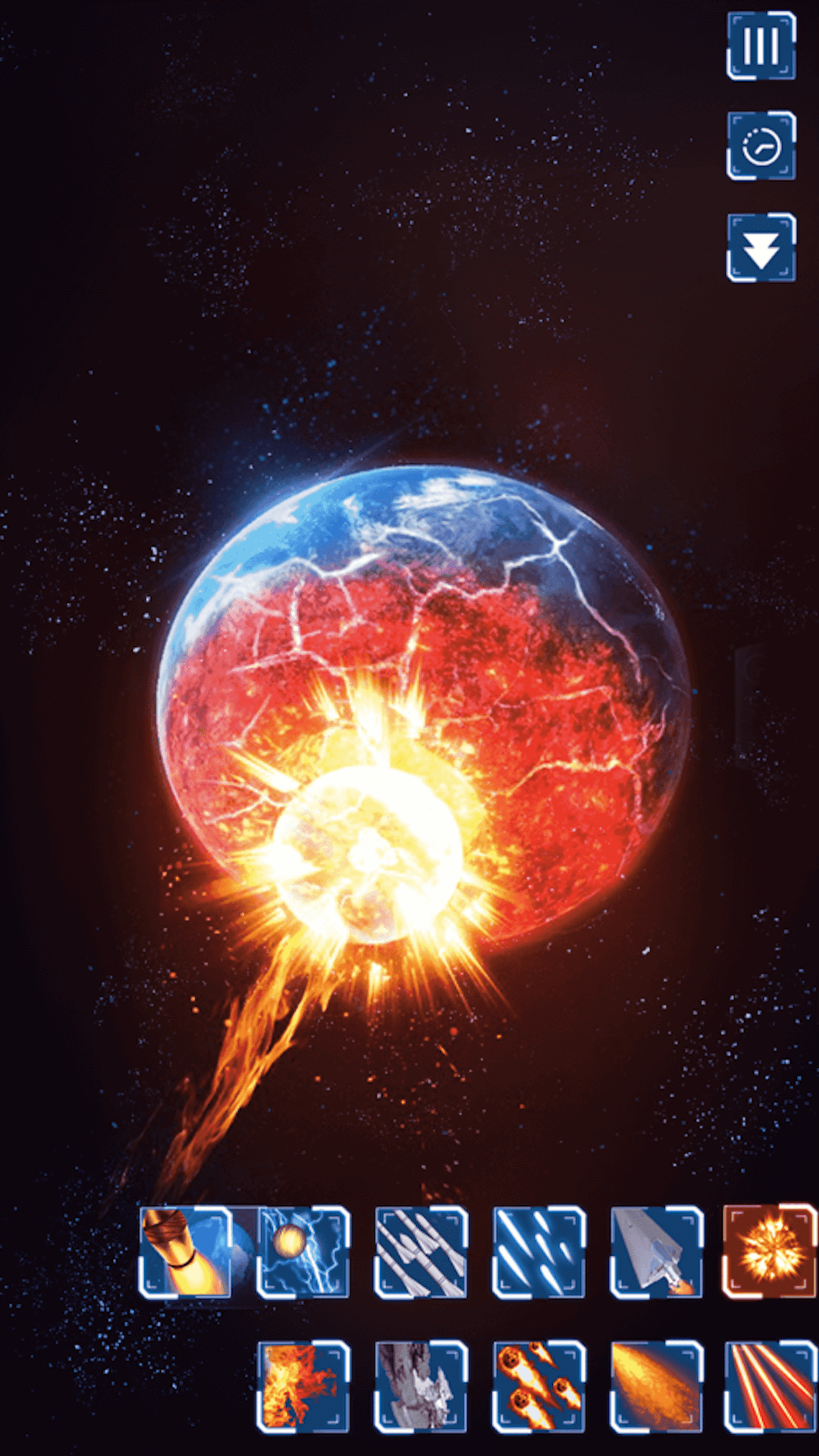 利用陨石,火箭,导弹,激光碎片等多样的武器对星球疯狂输出,超现实的爆炸场景和动感的音效,让你沉浸在星球宇宙爆炸中不能自拔。