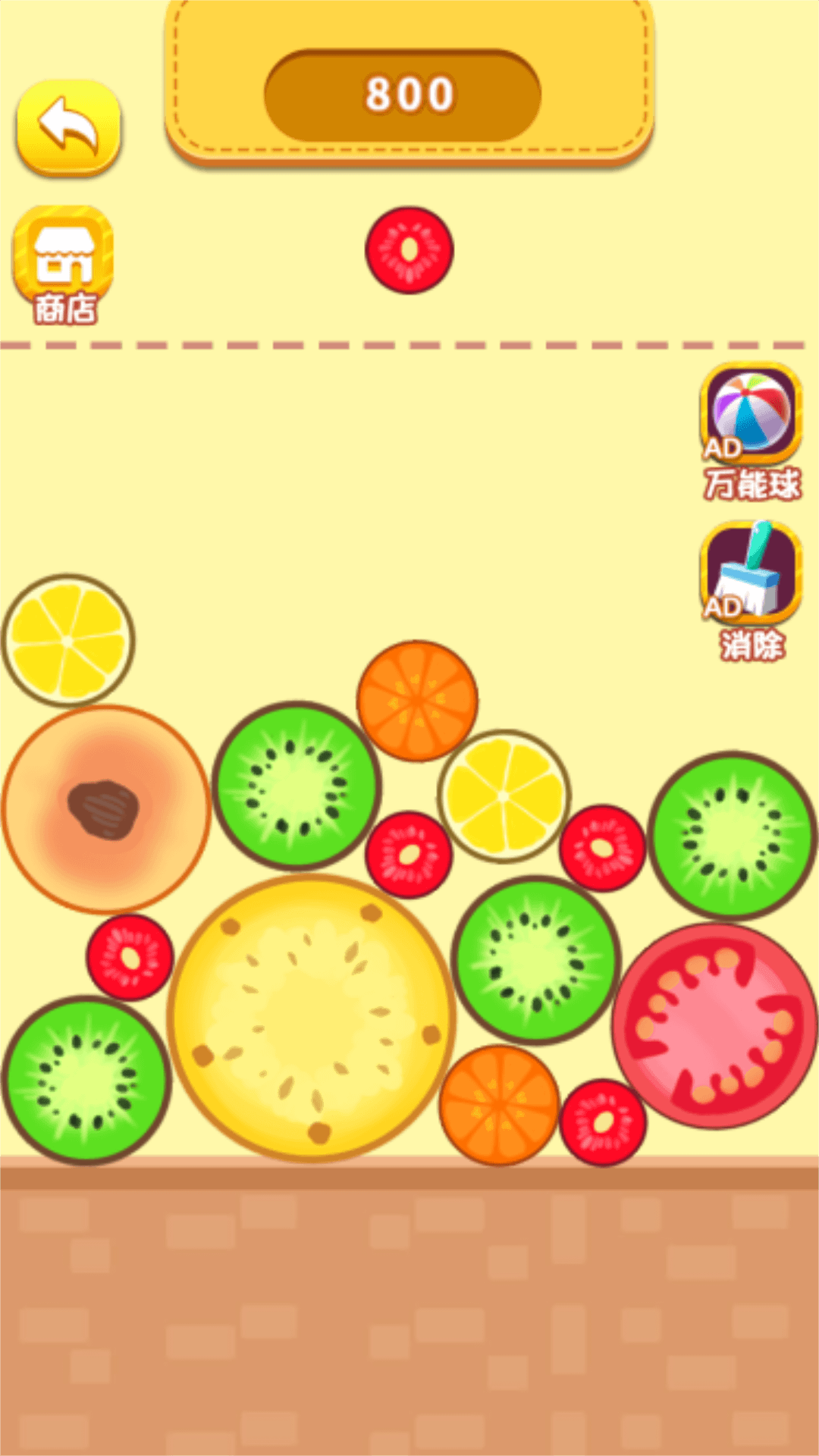 一款休闲类小游戏,游戏的核心玩法为控制水果的下落,进行合成水果,该版本无世界观背景设置。游戏主要玩法为滑动屏幕控制水果下落位置,让相同的水果进行合成,直到合成大西瓜,获得更多的积分,看你能合成多少个大西瓜,快来挑战吧!