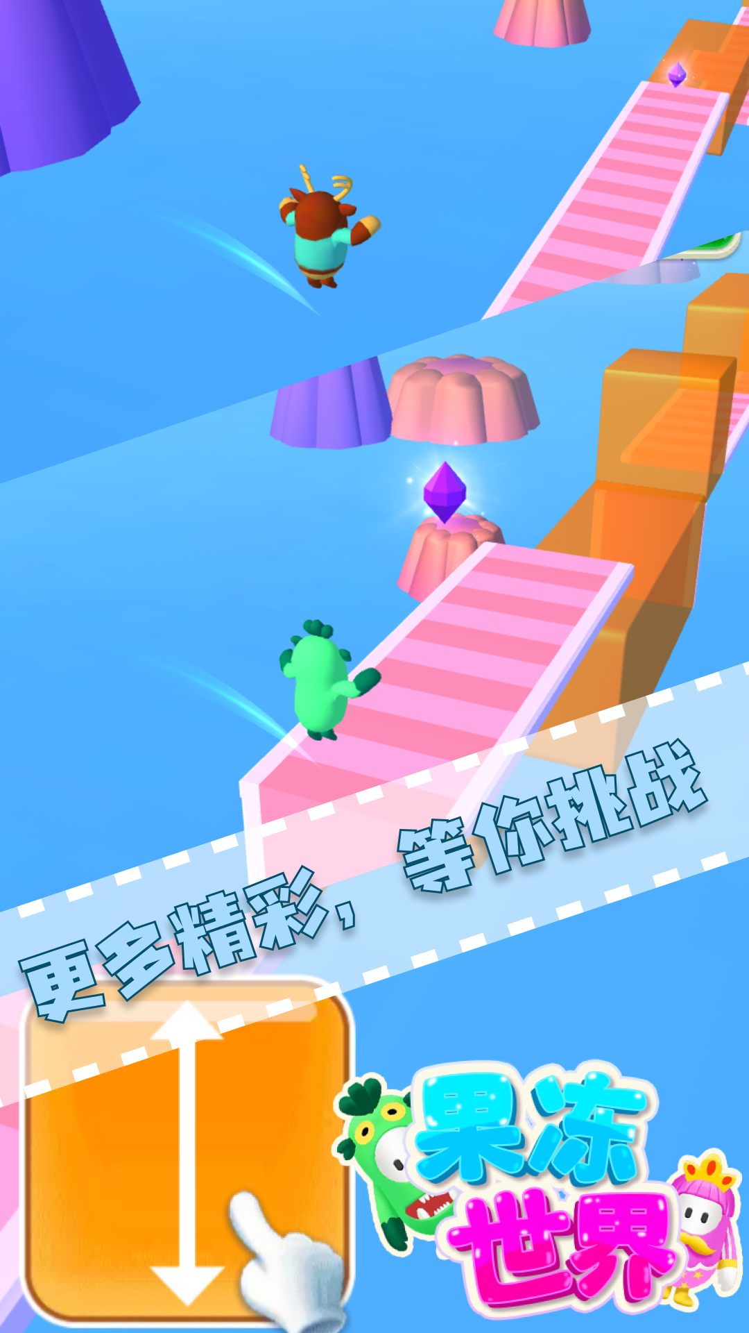 果冻世界是一款趣味休闲的果冻人跑酷游戏,携手Q弹可爱的果冻人开启欢乐跑酷大冒险,精心构筑的奇特果冻跑道等你来角逐,灵活操作秀出走位,一一避开沿途层出不穷的路障,带领果冻人顺利抵达终点吧。