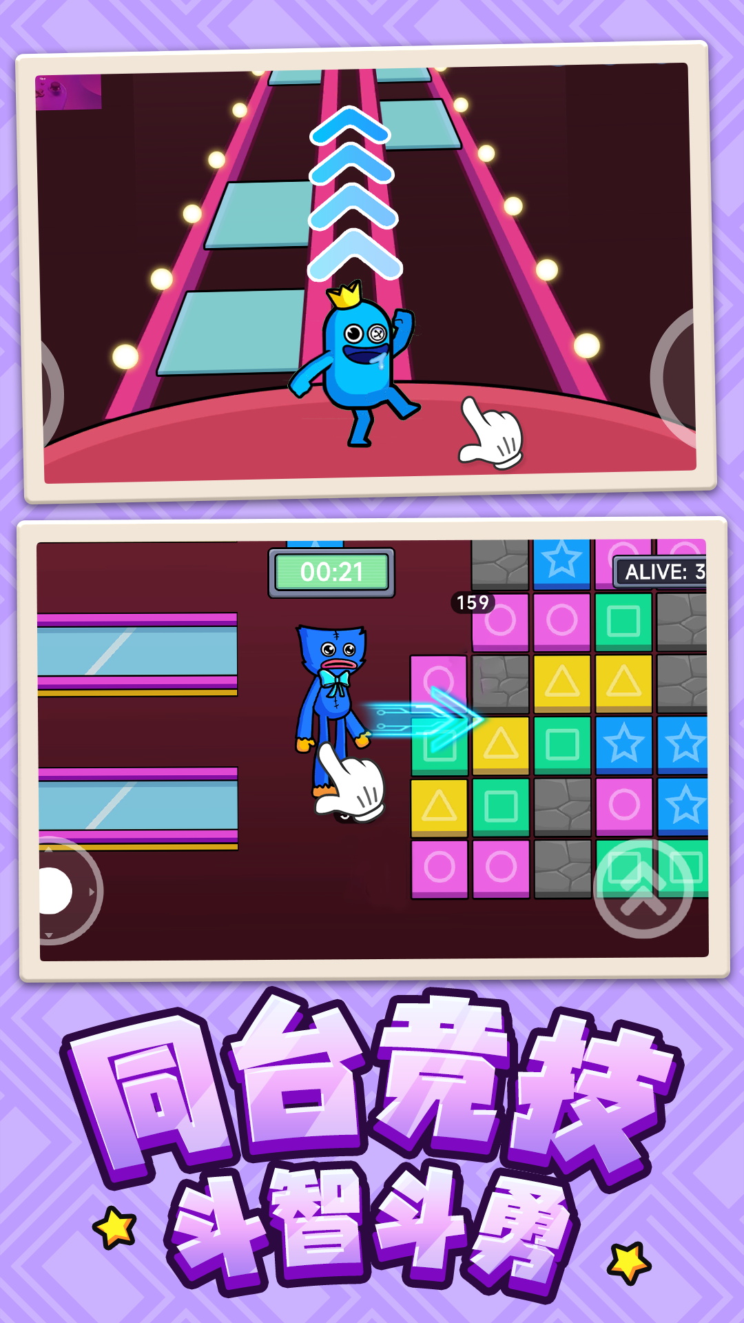 游戏内置超多炫彩皮肤,件件衣服不重样,还有多种游戏模式,紧张刺激的123木头人,考验记忆力的冰块跳板,极限反应的躲避冰锥,比拼力气的拔河比赛,更有吃鸡玩法,看谁能笑到最后,快来和小伙伴一起战斗到最后吧!