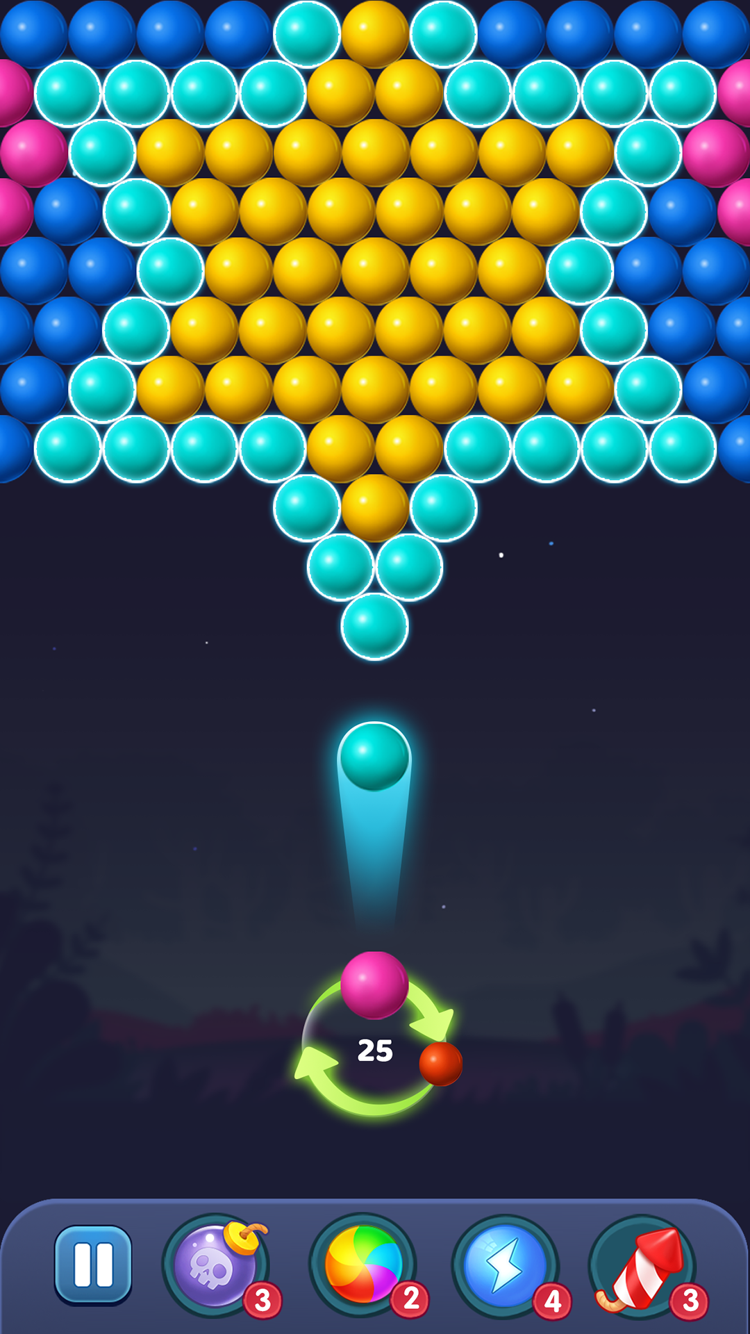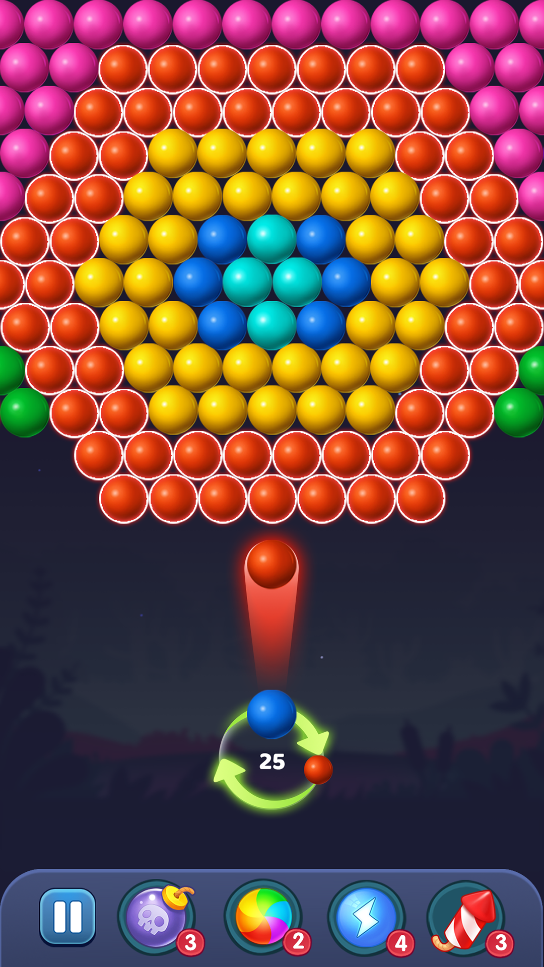 清除屏幕内所有泡泡,即可胜利过关。