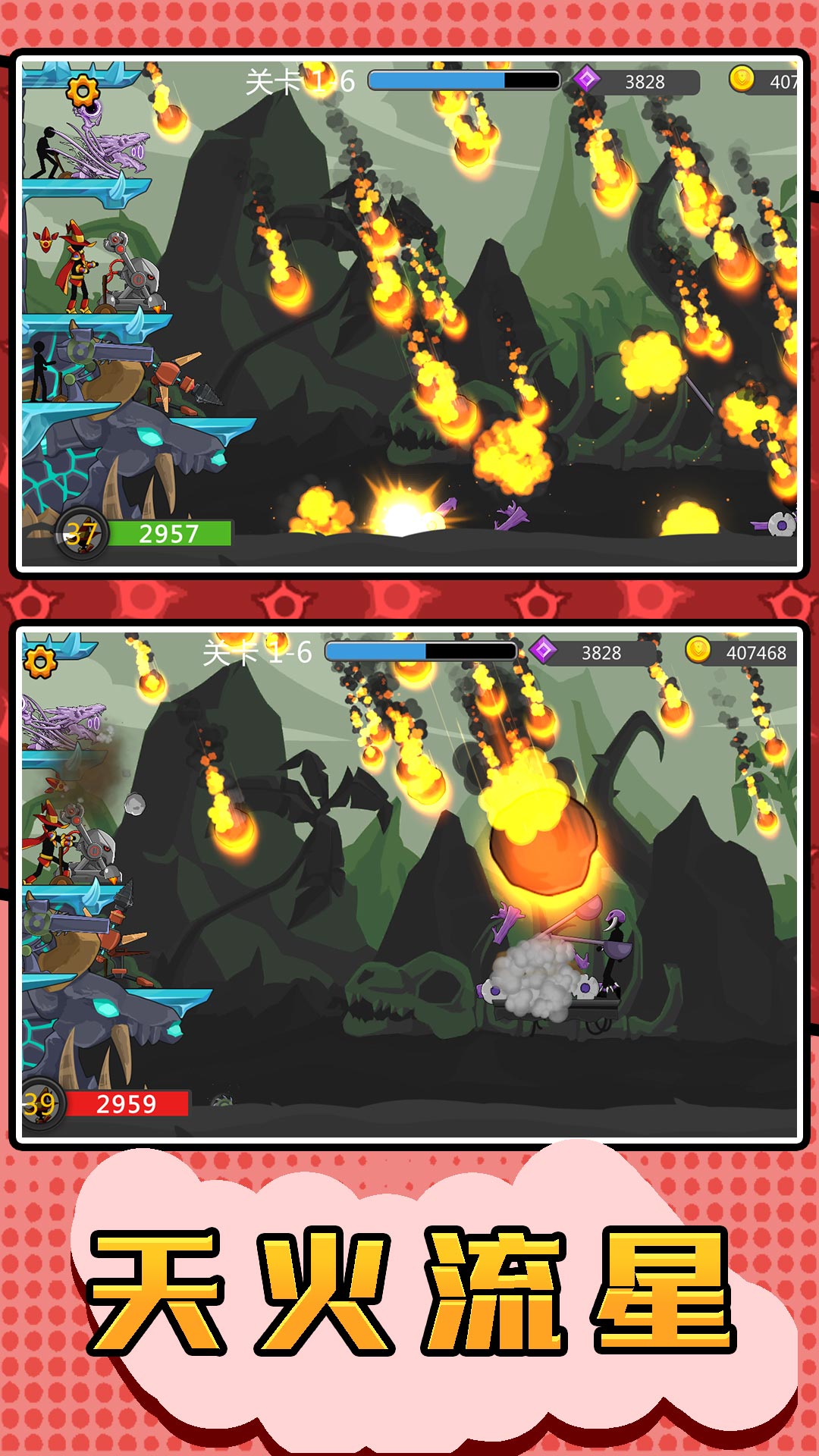 元素火柴勇士是一款火柴人画风的休闲游戏,游戏中您将操控火柴人战士,使用弹射器发射弹药,击败所有敌人,取得胜利。尽情体验游戏快乐,释放压力。游戏好玩有趣,画风优美,操作简单,快来下载体验吧