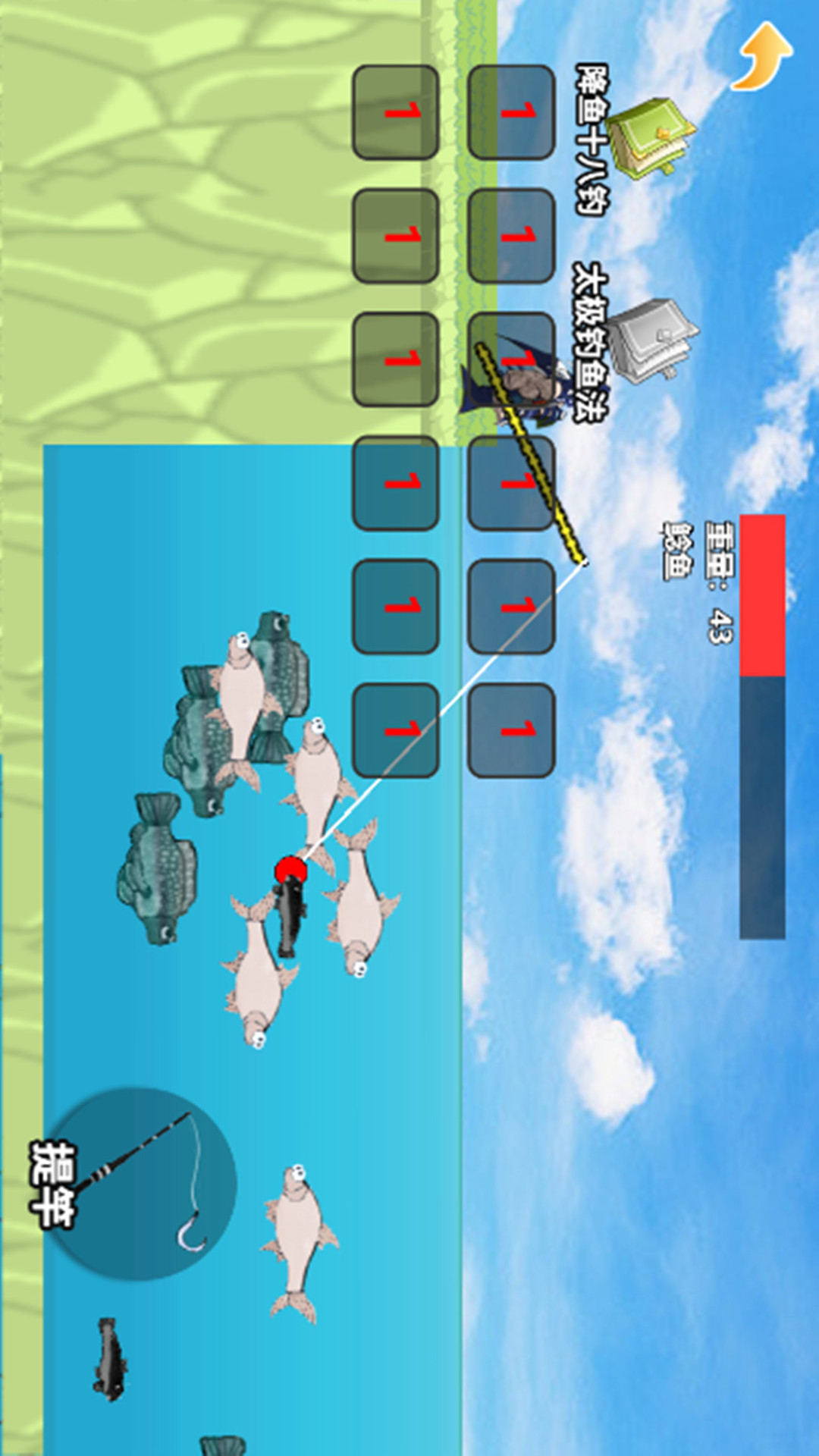 该游戏这是一款休闲钓鱼类游戏,全新的太极钓鱼法,运用太极方法钓上大鱼,叫上好朋友快来一起享受休闲钓鱼时光吧