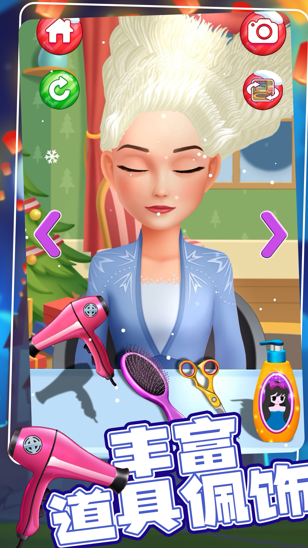 一款精美的儿童模拟类游戏,孩子们在这里可以为各位美丽的公主们做造型,体验托尼的快乐! 在游戏里,有多位公主在等待被改造,你将成为她们的造型师,发挥你的创意,为她们进行时尚发型设计,不管是顺滑的长直发,还是时尚个性的短发,只要是你想要的,就没有创造不出来的!在设计完发型之后,你还可以为她们搭配上各种精美的首饰,精致的珍珠项链,或者是炫酷的彩色眼镜,这些神奇的首饰都会为你设计的这套造型加分,在拍照环节,根据造型再为她们选择一个合适的背景布,拍下属于她们的人生照片!在游戏中除了设计造型,你还可以自由切换设计室的环境,你可以发挥你的想象力及创造力,让这些精美的室内环境为你提供灵感,设计出更符合当下场景的时尚造型! 游戏画面精美生动,快来发挥你的想象力及创造力,加入到这个魔法的世界,创造出属于你的时尚造型! 游戏玩点: 1、各式精美公主形象供你选择,将她们打造成时尚之星! 2、魔法发型设计,精致首饰搭配,发挥你的创造力完成搭配! 3、生动精美的画面,不同场景的切换可搭配不同造型,拍下公主们的人生照片!