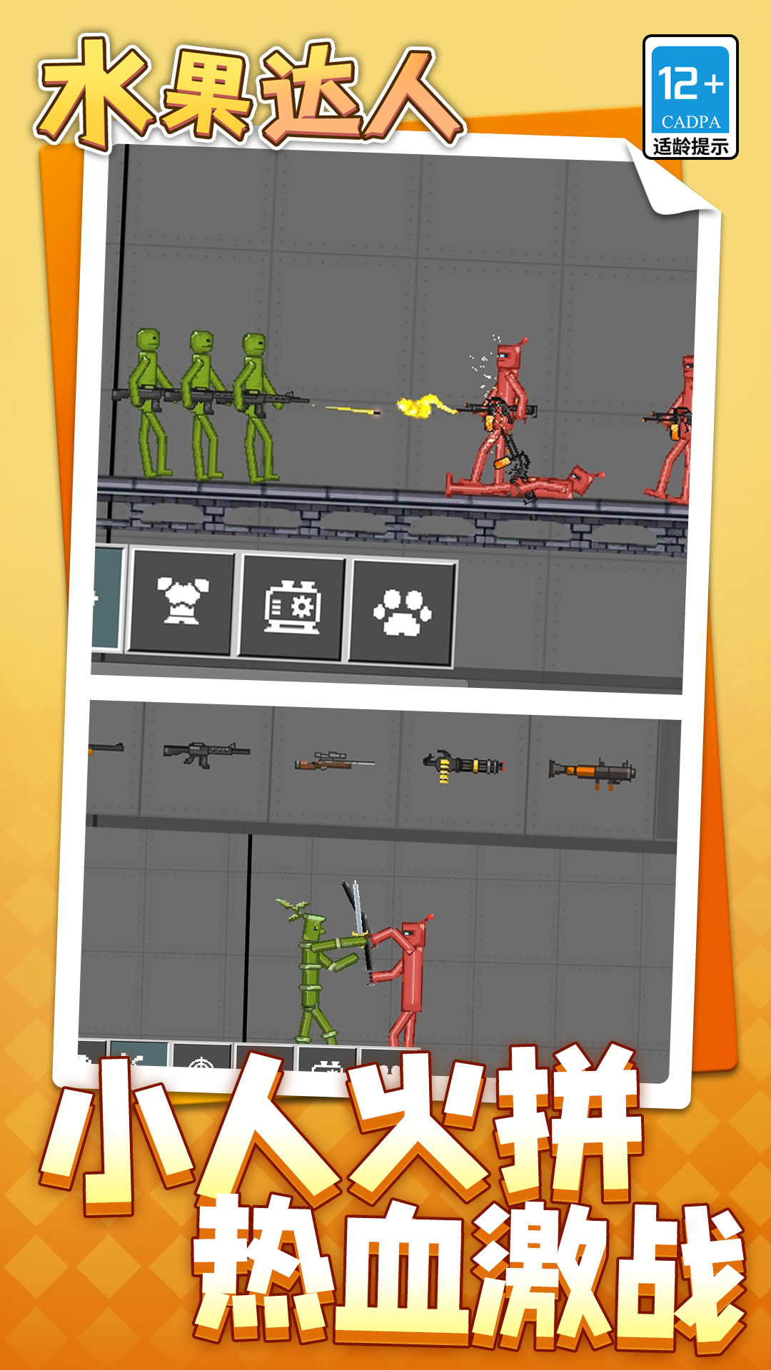 《水果达人》是一款沙盒模拟战争游戏,游戏中,玩家可以放置苹果人、甘蔗人、西瓜人等角色,给他们配备各种武器,来模拟一场酣畅淋漓的战斗,快来下载体验下吧。