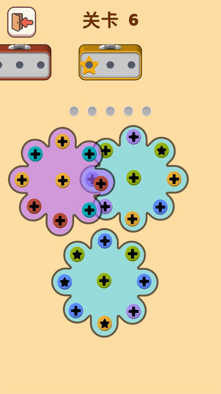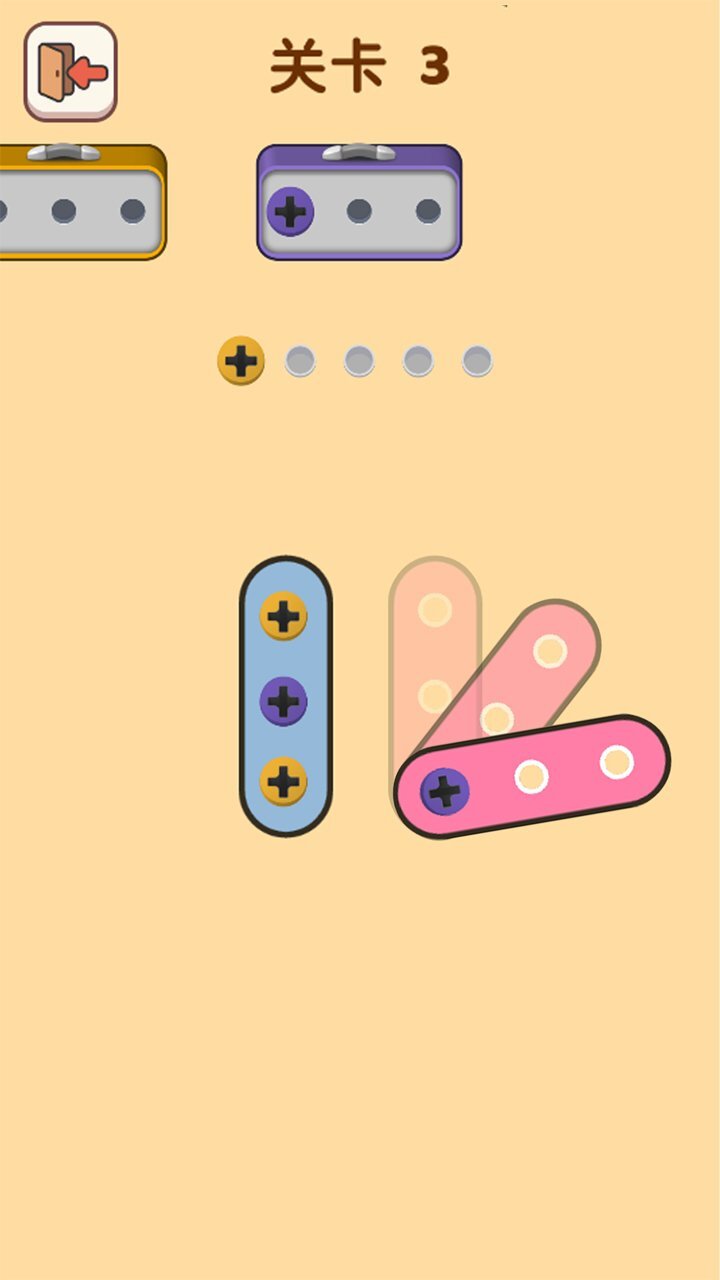 操作很简单,只需点击就能把螺丝收集到孔位里。当收集的螺丝填满相同颜色的盒子时,就会马上消除哦。不过要注意,如果孔位被填满了,那挑战就失败啦;要是能把所有螺丝都收集完,那就可以顺利通关。