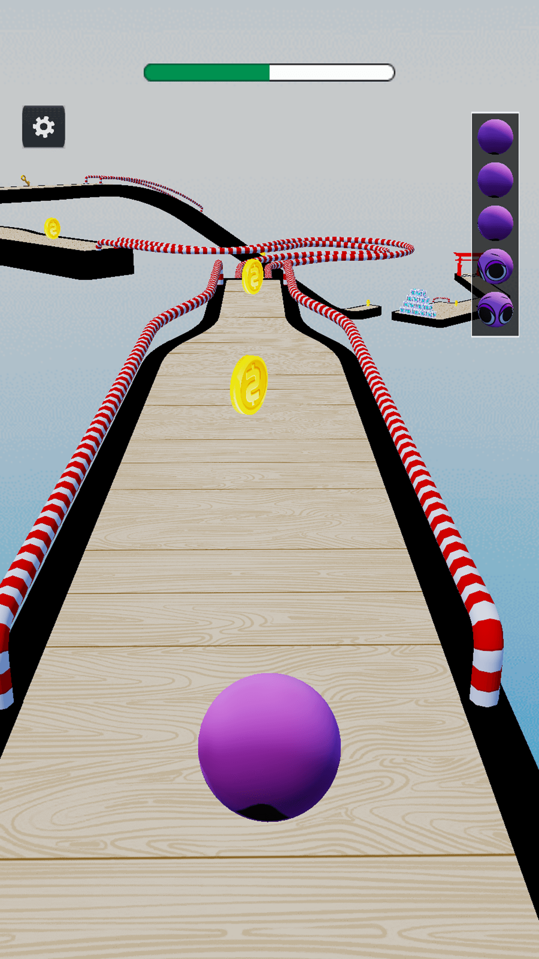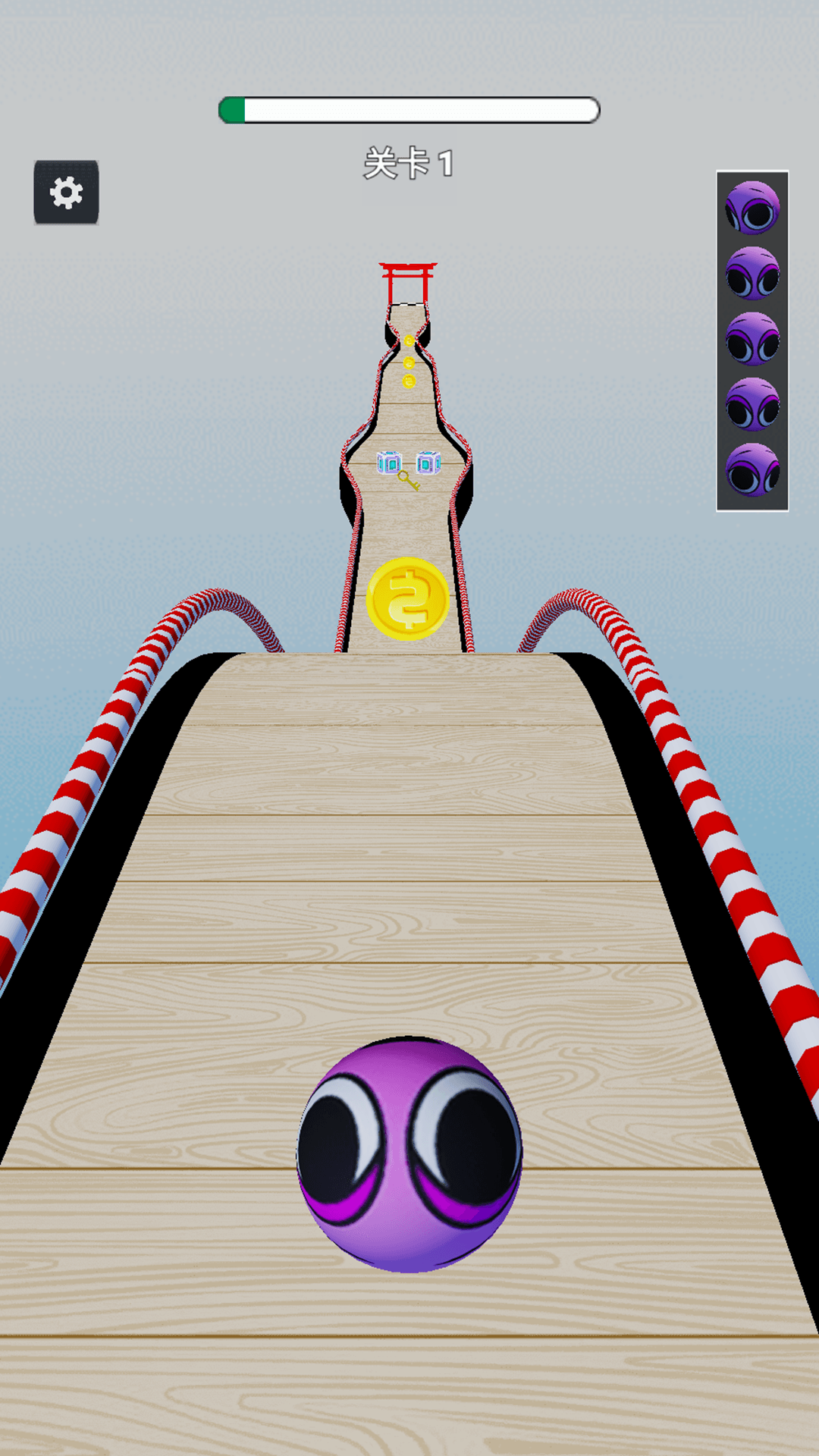 极简的操作方式,用手指左右移动球体穿越障碍,挑战你的反应能力,游戏有着丰富的场景和关卡,穿梭于天空、森林、沙漠,每关都是新体验