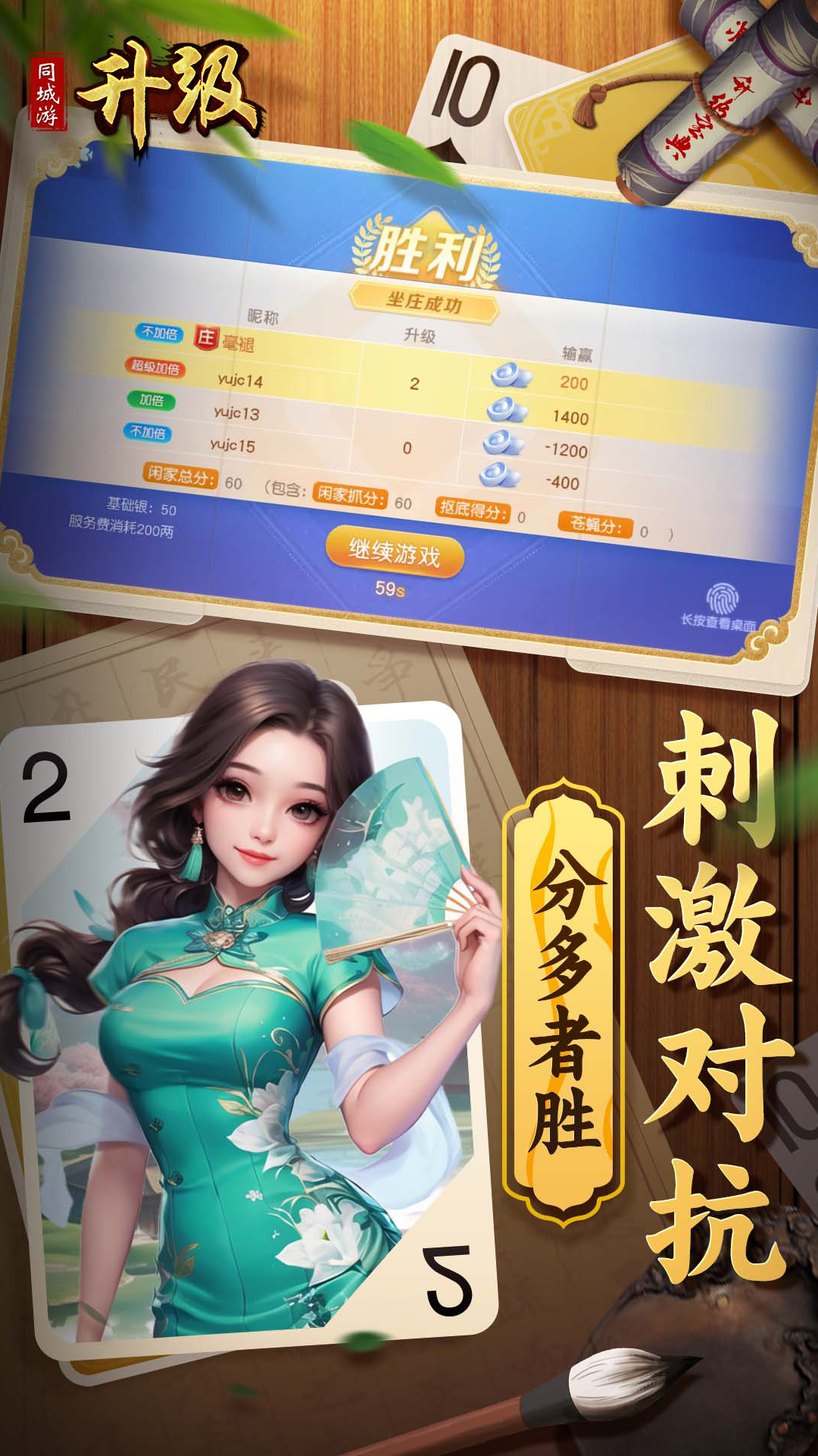 同城游升级是一款具有山东特色的地方升级类游戏,游戏属于抓分型牌类游戏。庄闲对垒,抢分升级,刺激炒底,风靡全国;
