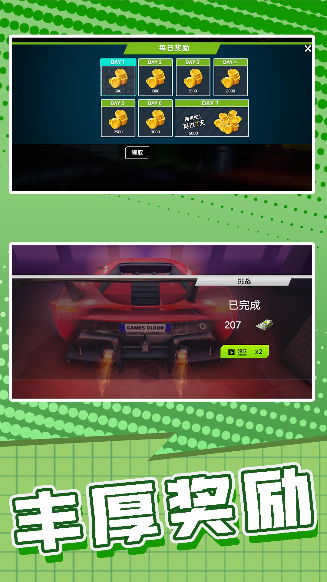 一款刺激的驾驶闯关游戏,包含有多累车型的汽车可以选择,通过驾驶自己的车辆来挑战完成各种的赛道,得到奖励之后能够解锁得到全新的汽车,也能够进行改装升级,提升自己汽车的性能!