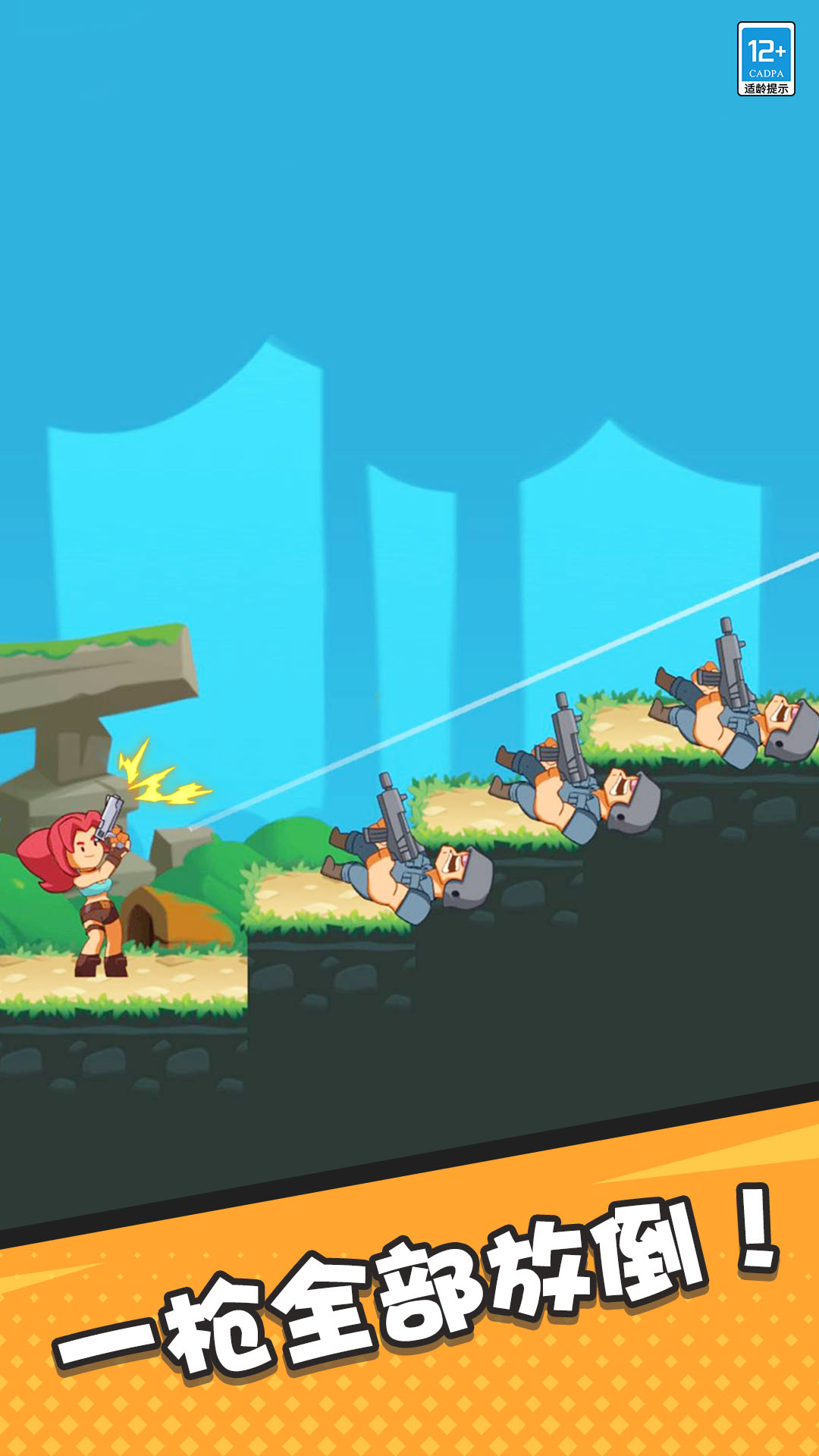 操作简单,易于上手,玩家只需要通过长按屏幕进行移动,放开手指即可进行射击,在有限的子弹下,击杀所有的敌人,发挥你的智商,策略为王!