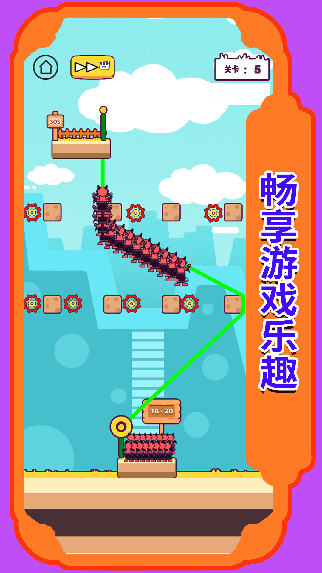 《起灰吧英雄》是一款益智类拉绳拯救游戏,玩家需要合理调整绳子的角度把高台上的小人安全送到地下,让这些小人从高台起灰,勇敢的英雄们,快来参与吧!