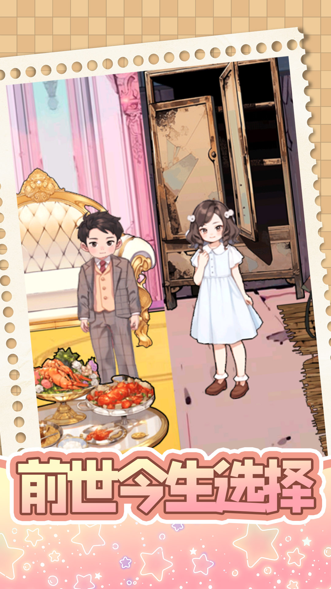 《前世今生选择》是一款热梗找茬的休闲益智类游戏,你将体验前世今生的种种选择。玩家将面临各种抉择,每个选择都会影响故事情节的发展和结局,是穷养还是富养,选择领养男孩或者是女孩?各式各样的结局等你来解锁。