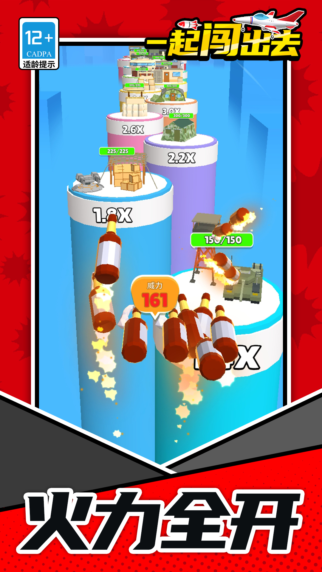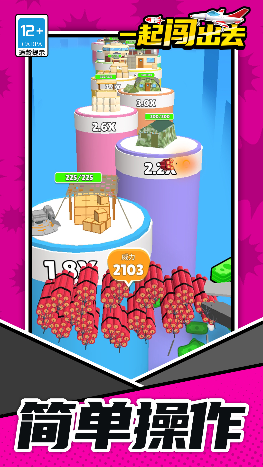 《一起闯出去》是一款休闲策略益智类游戏。玩家在飞机上投掷下炸弹来摧毁打击目标。炸弹下坠过程中,玩家需要合并、繁殖和进化炸弹,使它们威力更强大。游戏设有多个关卡,每个关卡都具有不同的布局和目标。玩家需要通过一关关的挑战来解锁更高级别的关卡,同时获得更多的进化炸弹和奖励。游戏需要考验各位玩家的策略性和计算能力以及反应力。快来体验一下吧!