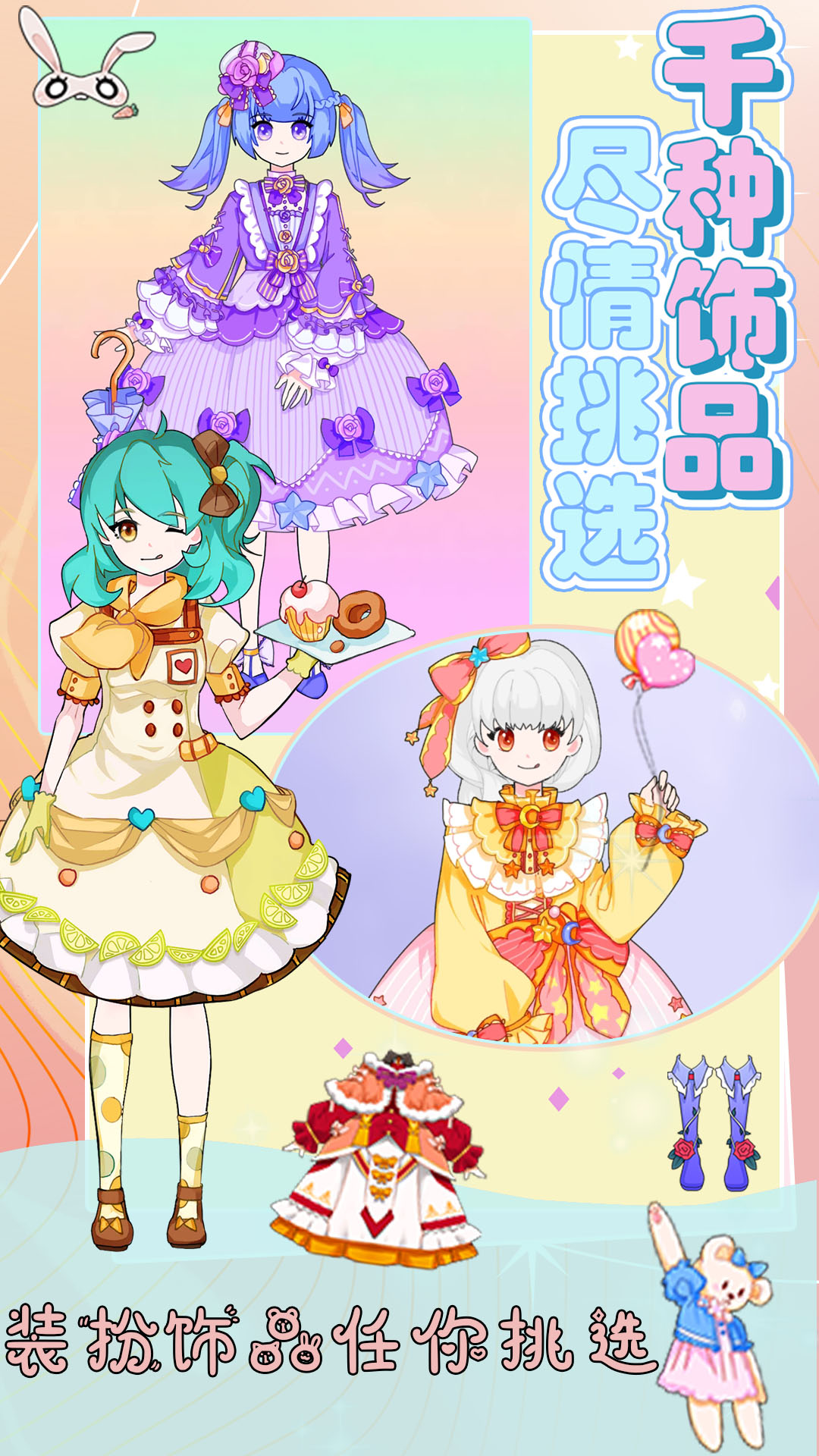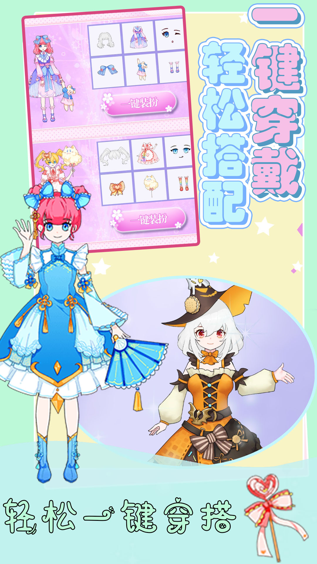 不管是韩版华服还是可爱的次元少女或者是御姐风,您都可自由搭配!还可以设计娃娃背景,制作精美的头像和保存壁纸。