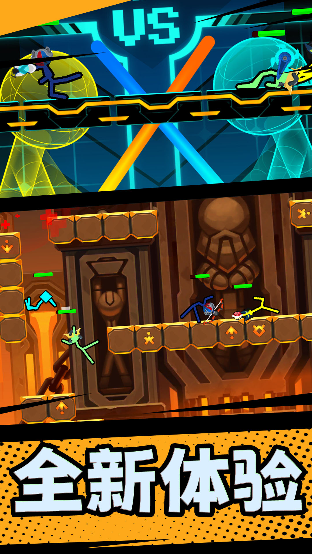 超神火柴人是一款有趣又疯狂的火柴人手游,您可以选择任意角色,并在2人模式下与朋友一起玩,游戏完全免费,能带给你欢乐将会是我们的荣幸。