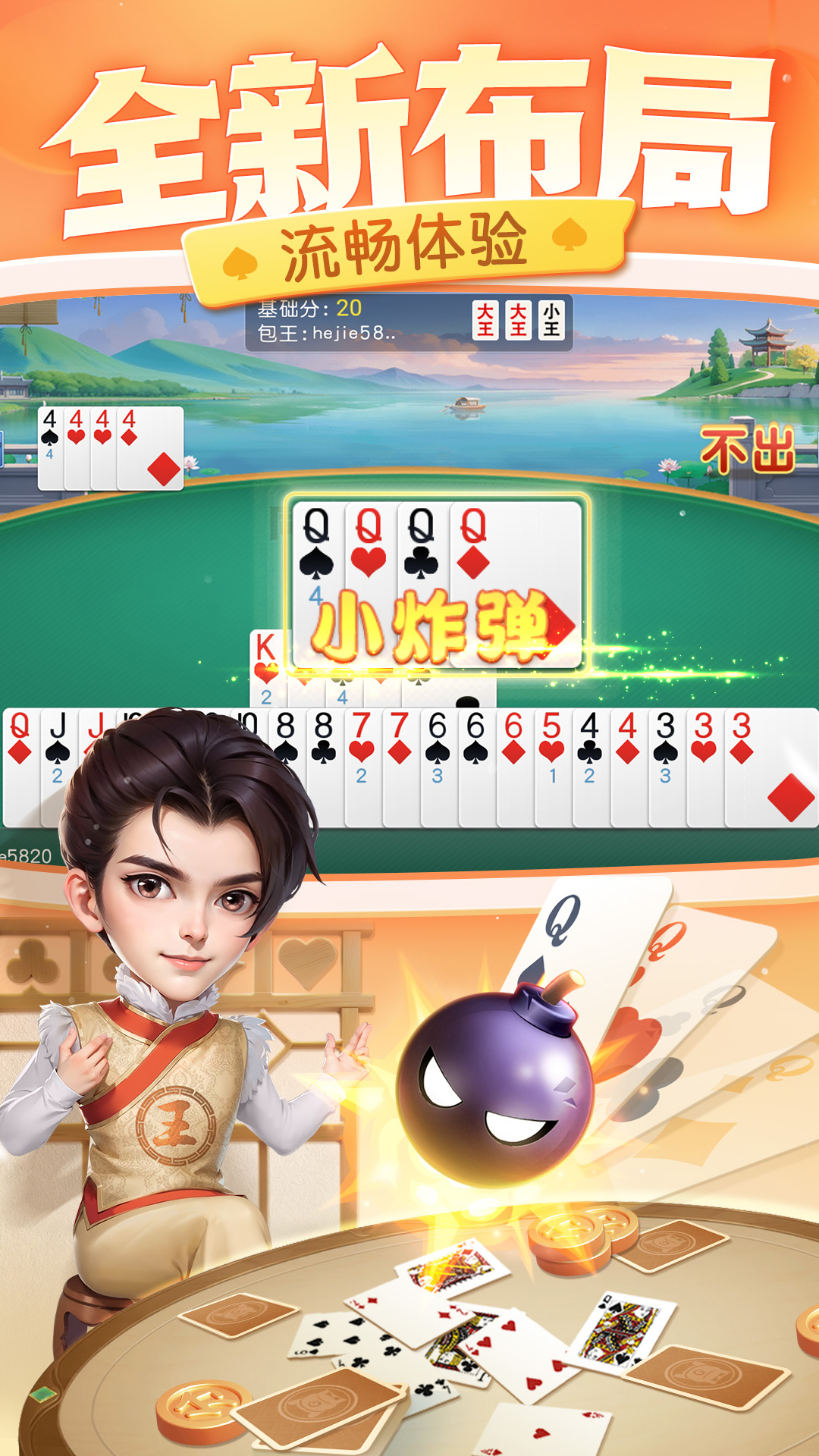 乐平包王是一种广泛流传在江西乐平地区的三人游戏,同城游乐平包王两副牌,一对二跑牌类游戏,游戏对抗性强、玩法灵活。乐平包王使用两副牌,3个人玩,包王者一打二,可出牌型有单牌、对子、三张牌、顺子、连对、三带对、炸弹等牌型,王是万能牌,不能单出,打出部分炸弹牌型有奖励,奖励可叠加,先出完牌的一方获胜。