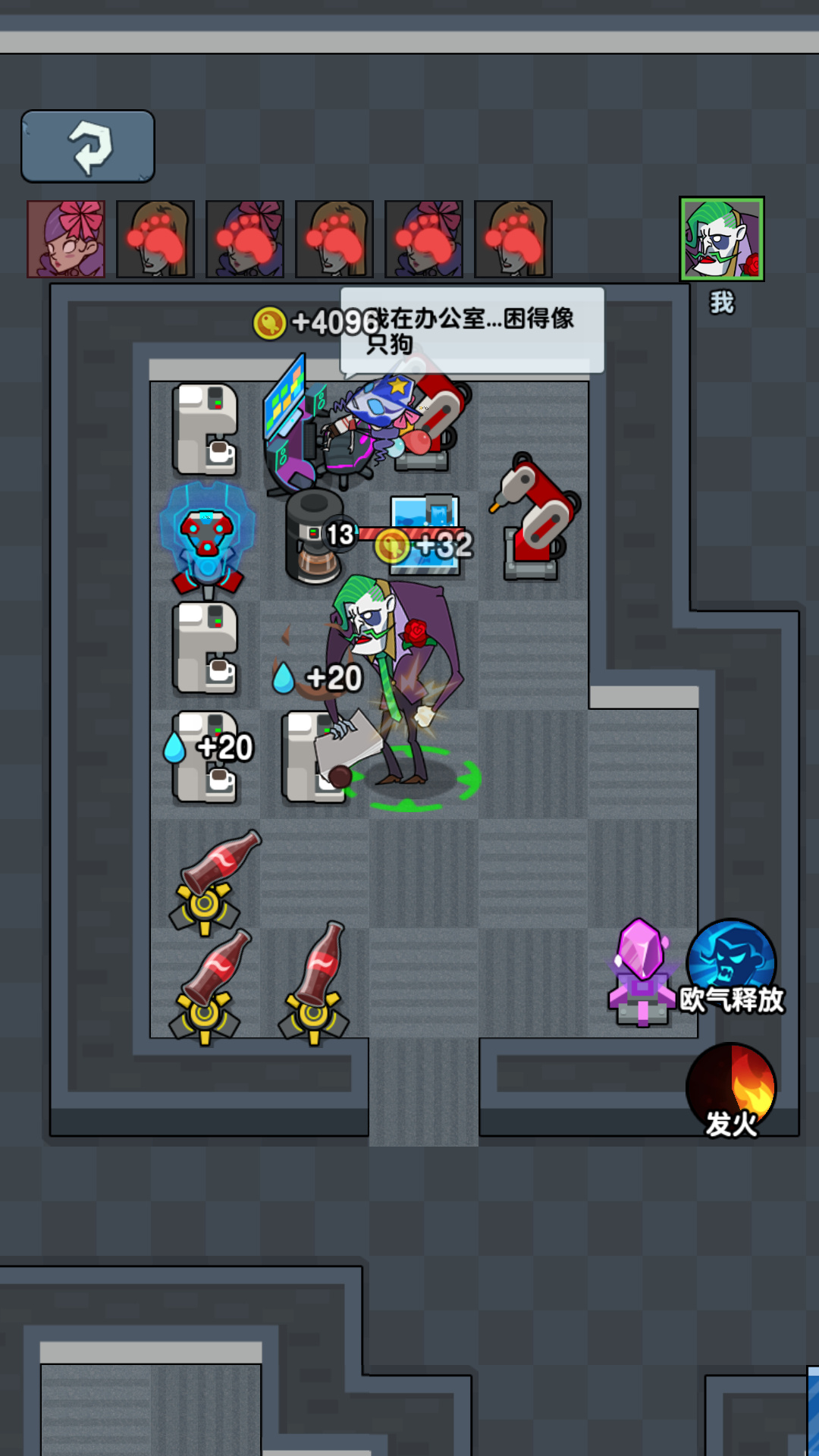 一款非常魔幻精彩的趣味塔防闯关玩法,游戏开局玩家就需要快速开启自己的躺平摸鱼人生,并在门口布置更多的防御塔,抵御老板的攻击(哼哼,想摆烂摸鱼?统统优化掉)。在游戏中,你将扮演打工人角色,面对老板的层层pua和鸭梨,需要建立更多防御措施抵挡他,千万不要让它发现你在摸鱼。游戏在原有基础上增加了全新的一些元素,策略的塔防玩法以及新的办公室剧情,依旧是躺平就能拿金币,快速升级各种炮塔,挡住老板。