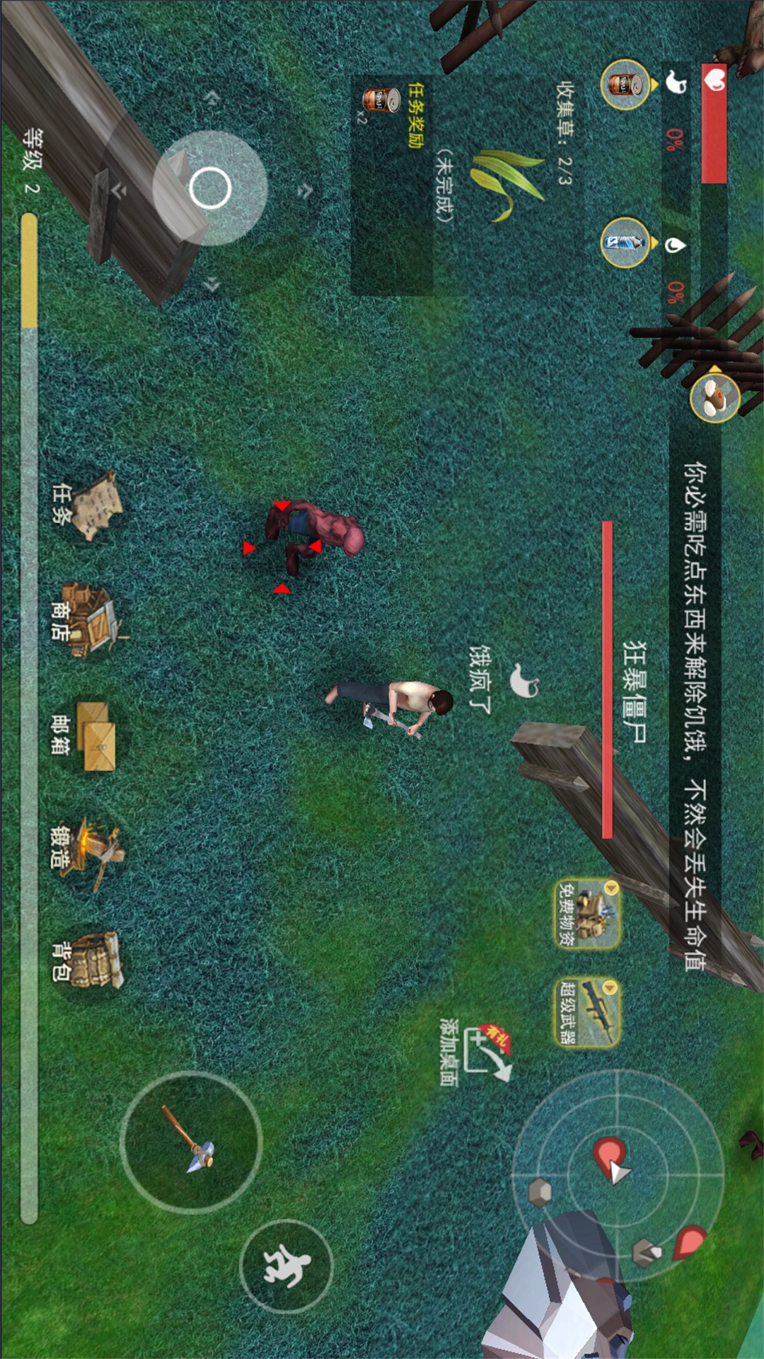 收集资源、制作工具和武器,建造防御设施,管理你的食物和水资源,确保自己能在僵尸岛上生存下去。