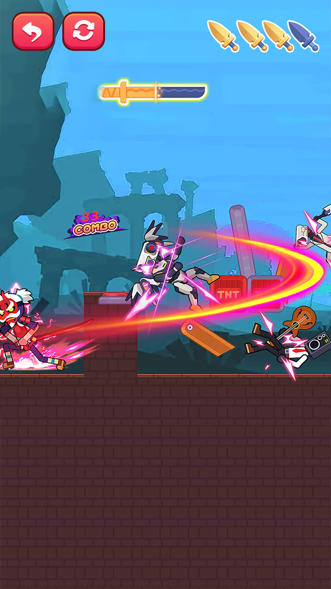 合理利用地形将所有敌人一刀解决。