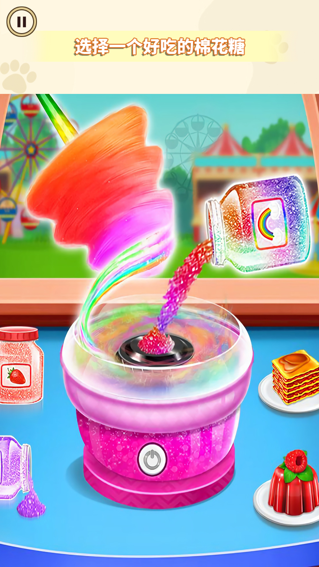 《制作棉花糖模拟》是一款模拟经营游戏,游戏中你将扮演一名棉花糖小摊主,通过完成制作不同的棉花糖来满足客户的需求。又或是DIY属于自己的棉花糖吧!