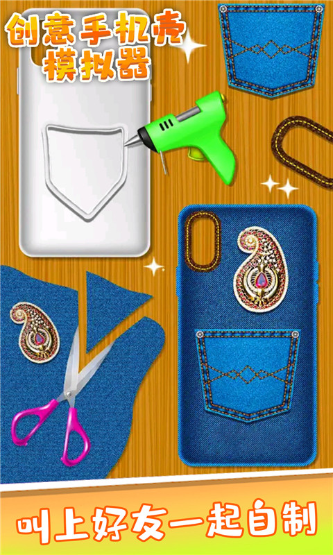 《创意手机壳模拟器》是一款模拟经营制作手机壳的手机游戏,玩家在游戏中经营着一家制作手机壳的店铺,你需要满足顾客的要求,进行自由的创作。先将胶水涂抹在手机壳上,涂抹均匀,可以进入下一步;顾客有要求就选择顾客想要的颜色,没有就可以自由创作;再贴上装饰品,完成这个手机壳,收取相应的金币奖励。发挥你的创作力,有多种不同的道具供你选择,还有很多好看的贴纸等你来解锁。可以为店铺带来更多的生意,获得的金币可以装修店铺和解锁更多桌布、吹干机、胶水皮肤。快来设计手机壳吧!
