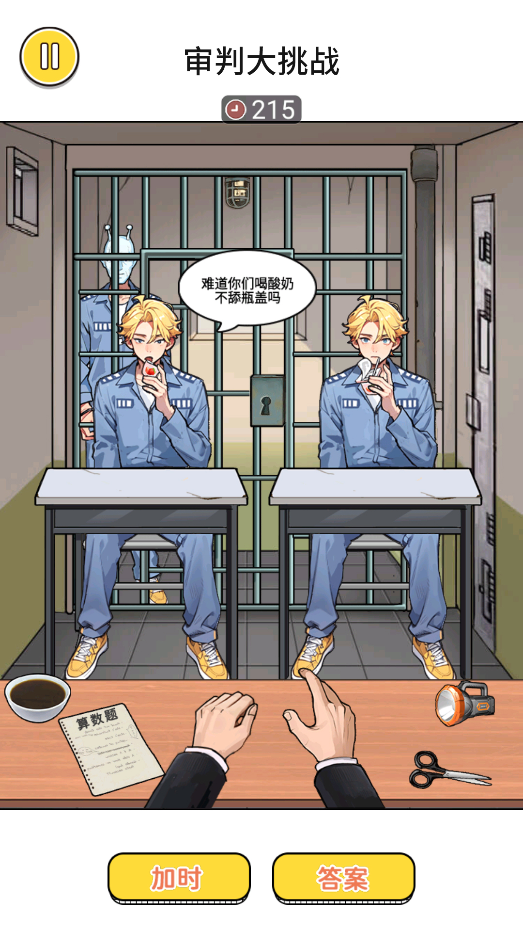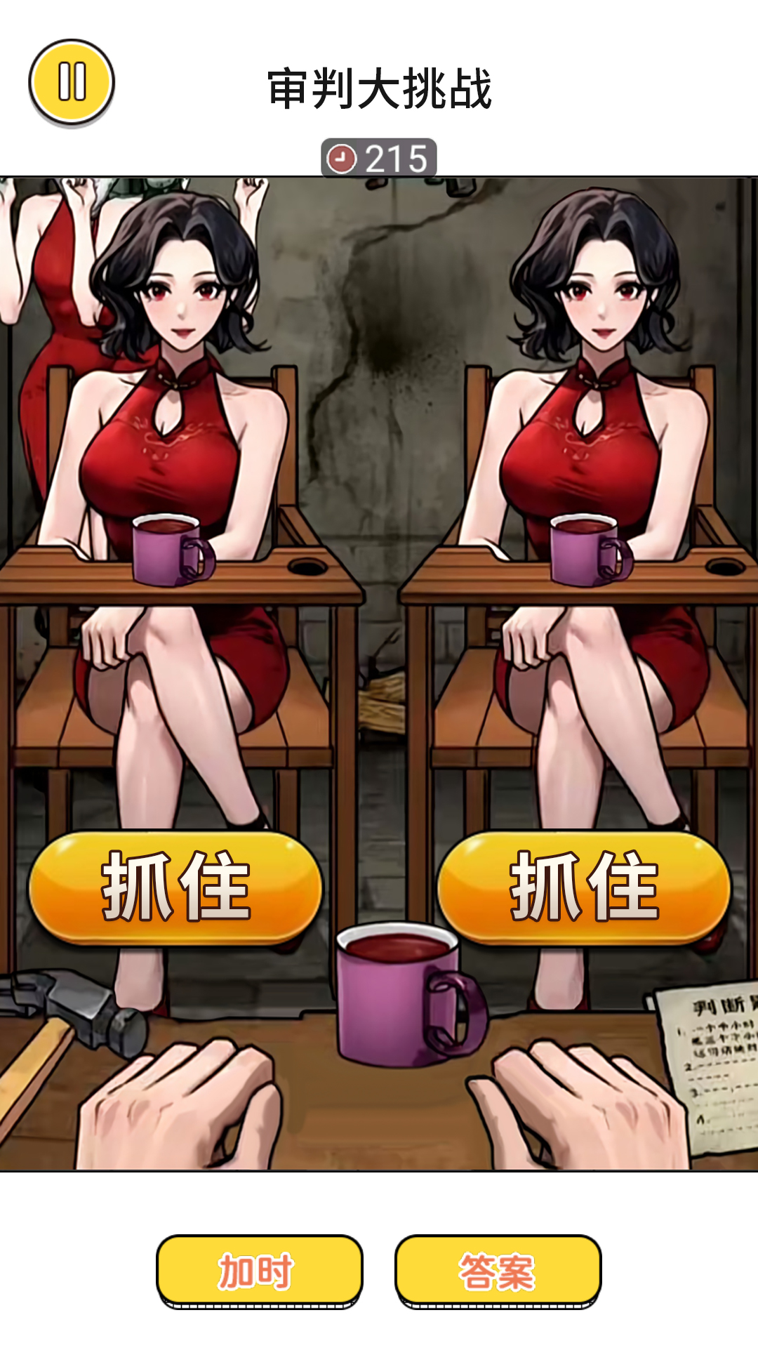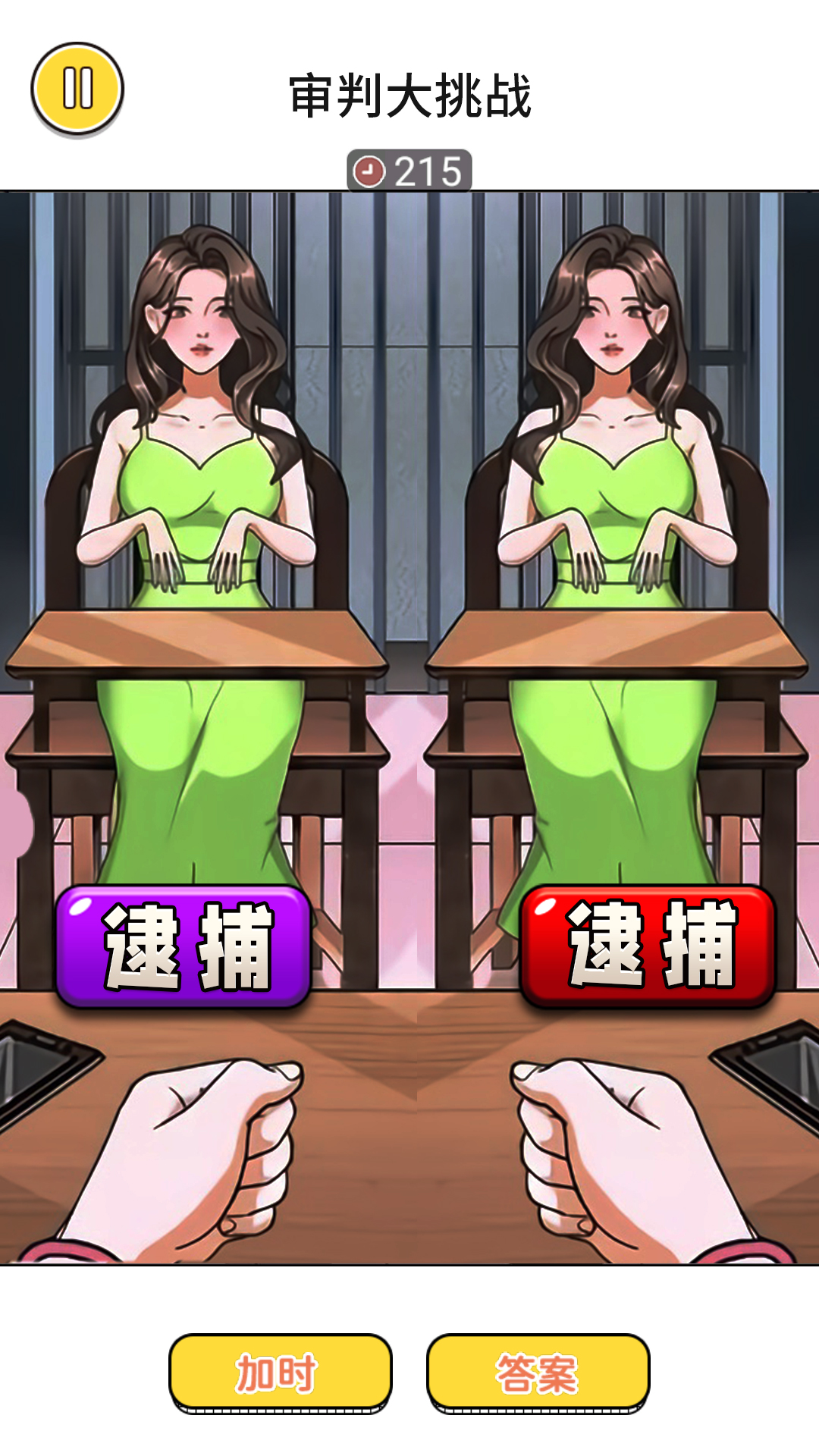 《审判大挑战》是一款休闲益智游戏,游戏中你需要从两个一样的人里面找出伪装的异类,异类和正常人会有一些细微的差距,仔细的观察,然后把他找出来吧。