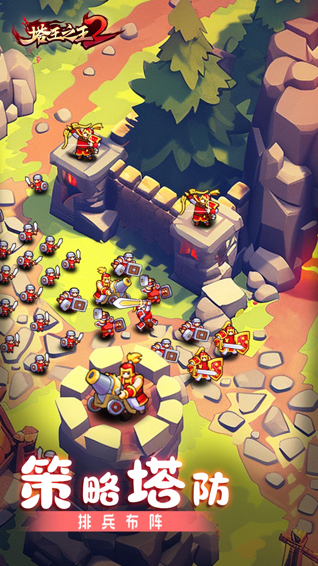 在《塔王之王2》里,您将会在城池,村庄,森林、山脉和荒原与敌人交战,需要你招募三国名将,与您一起保卫自己的王国抵御敌人的入侵。
