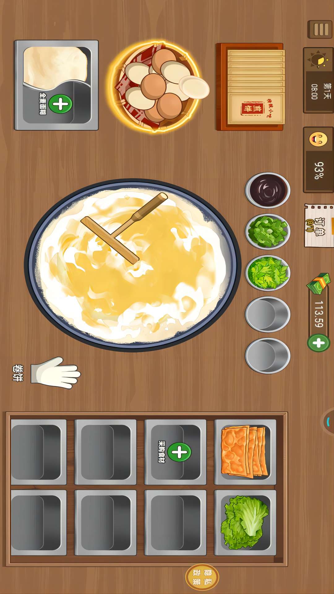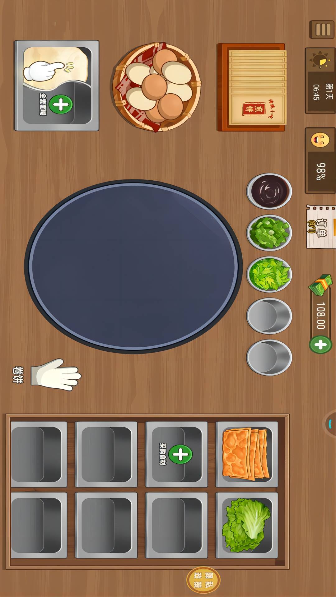 你经营着一家煎饼大排档,每天制作煎饼果子,接待着各种各样的客人。你需要卖煎饼来解锁更多食材,例如辣条、热狗、培根、鸡柳等,不断丰富煎饼配方来吸引更多的客人。