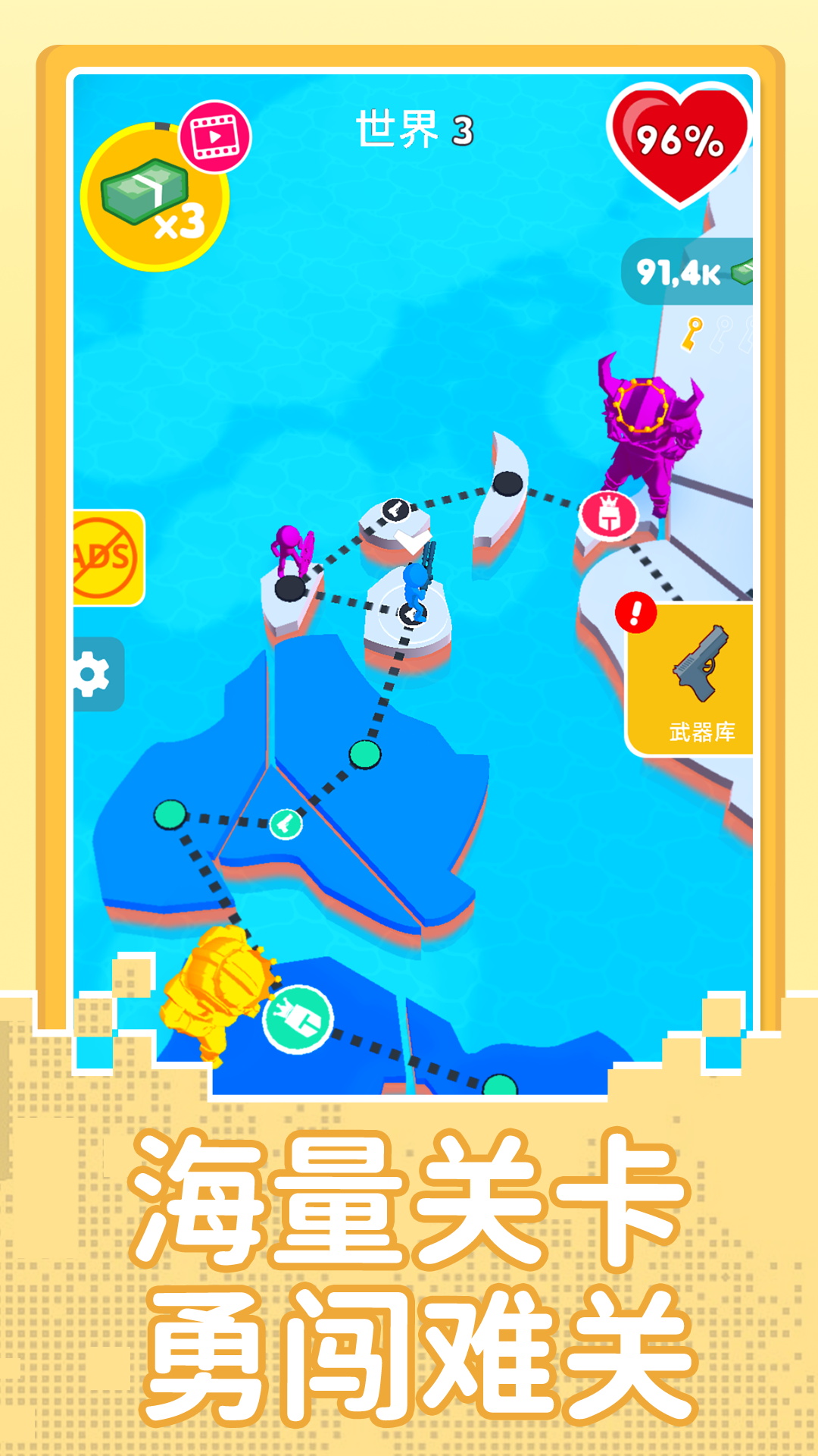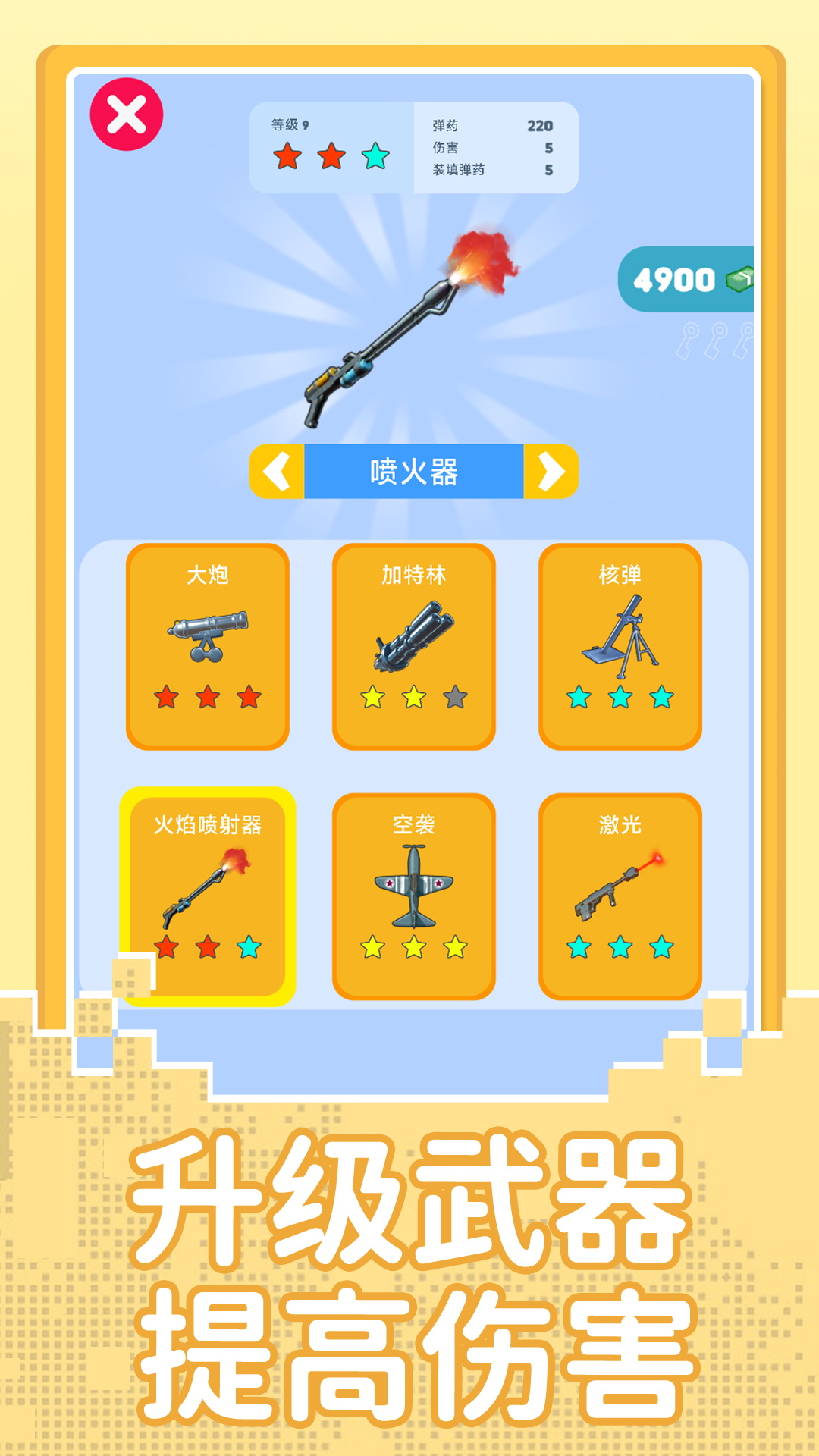 3. 收集各种能量道具升级武器,可以让你的战斗更流畅,轻松过关。