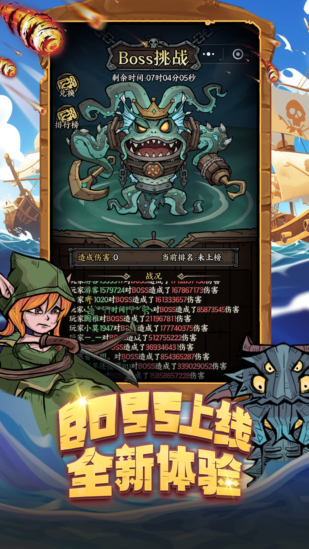 作为一名在海上横行的海盗,也会在茫茫大海中遇到各种各样的怪物,面对如潮水般汹涌而来的怪物群,你能够守住你的船吗?