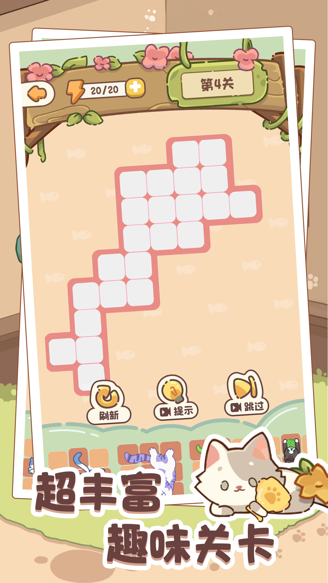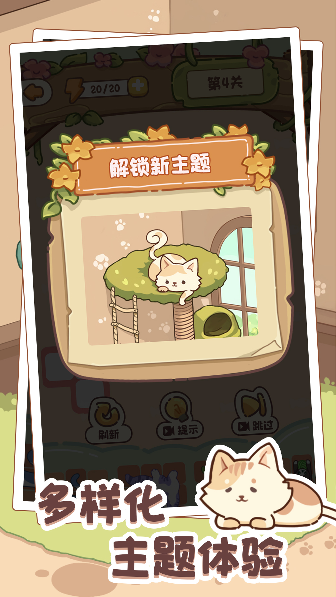 玩家将进入一个充满可爱猫咪的世界,通过“拼”猫猫挑战来解锁更多种类的猫咪,并装饰自己的猫咪乐园。为玩家带来轻松愉快的游戏体验,同时锻炼玩家的空间想象能力和逻辑思维能力。