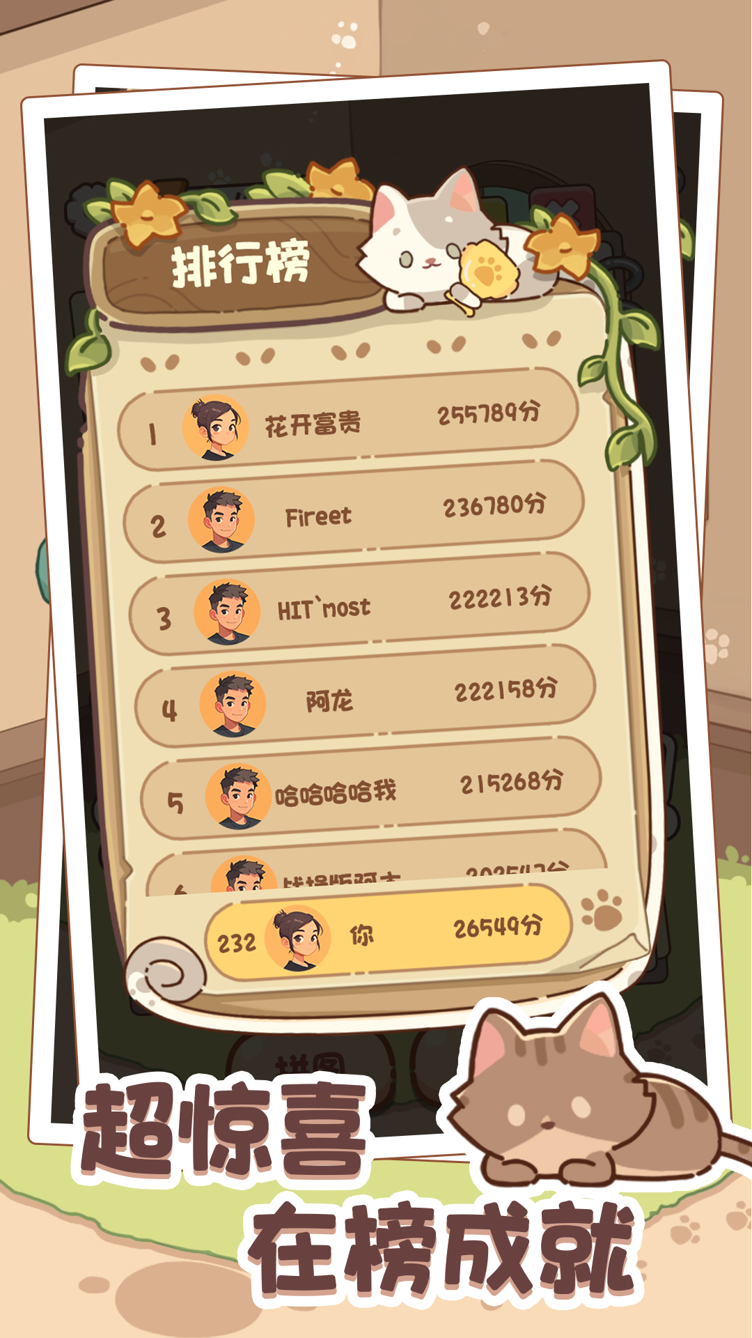 游戏包含多个精心设计的猫猫关卡,难度从简单到复杂逐渐递增,满足不同玩家的需求。