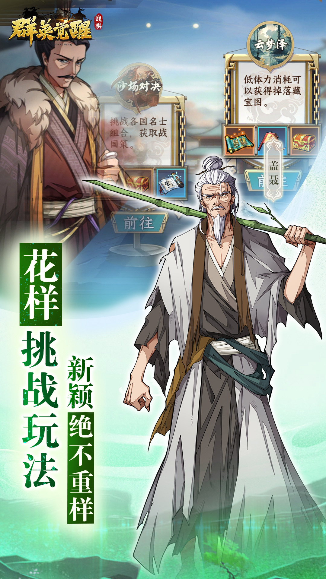 诸子百家、战国名将、红颜知己、奇异妖族,在这群英大舞台上悉数登场,将他们加入你的麾下,一起并肩战斗吧!