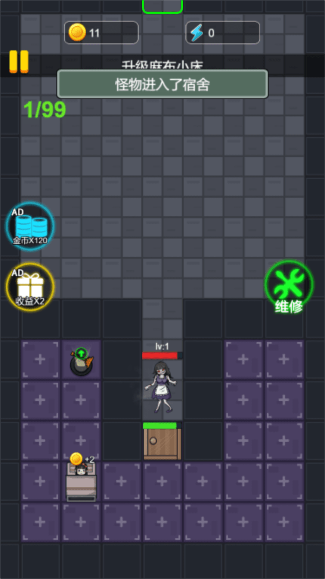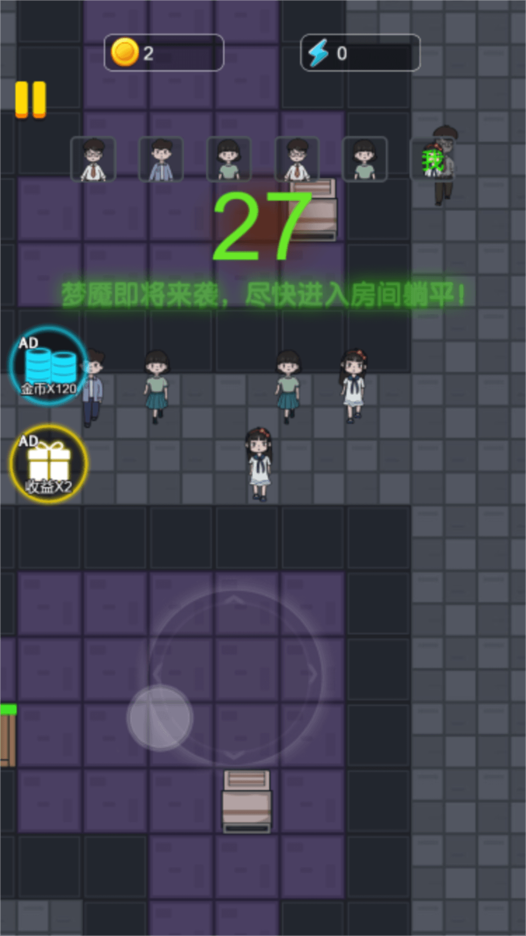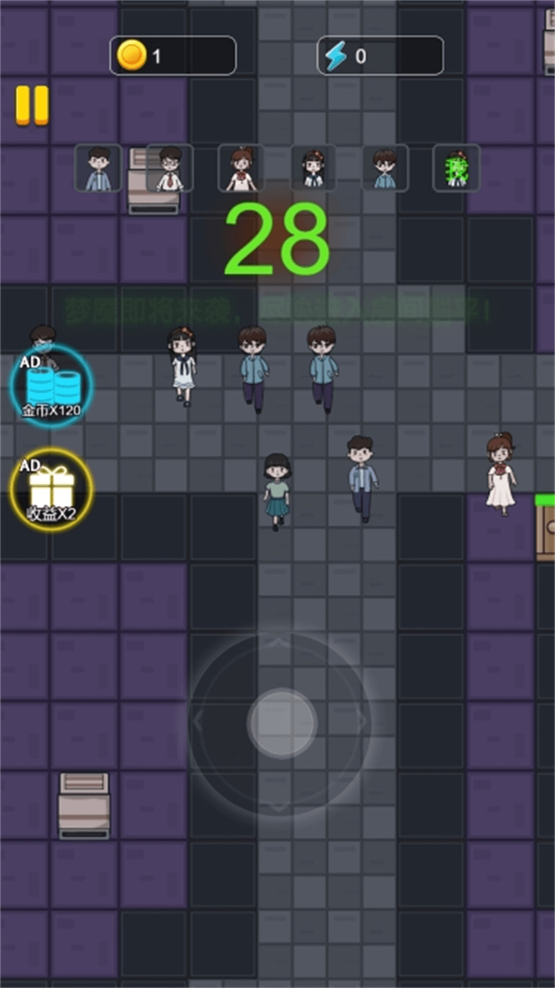 一款休闲类生存小游戏,该游戏需要玩家扮演逃亡者,在恐怖大楼内躲避怪物的追击,躲进安全的房间,躺平发育,建造多种建筑,想办法击败怪物获得胜利。该游戏有着精致的美术设计,氛围感十足的音乐,还有多种趣味玩法,快来一起试试吧!