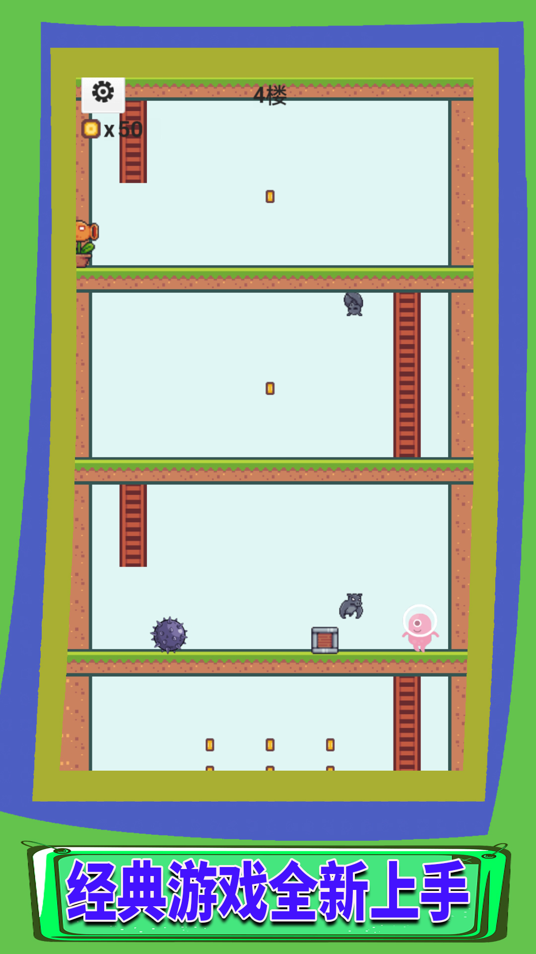 《萌萌大冒险》是一款休闲刺激爬楼游戏,通过爬梯子完成游戏,在游戏中跳跃各种障碍到达终点,挑战玩家的灵活性和协调能力,快来参与吧!