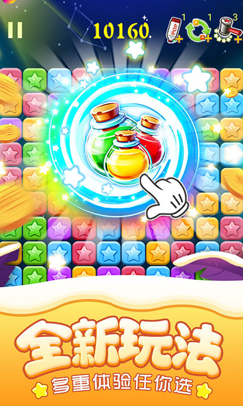 规则超简单,找到并消除两个以上的相同颜色的方块,相连方块越多,得分越高!